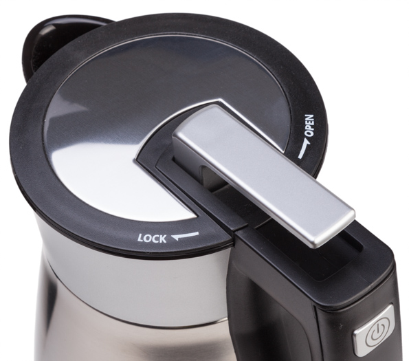 Органов управления всего два: ручка на крышке и кнопка на рукоятке чайника, расположены они близко друг от друга.