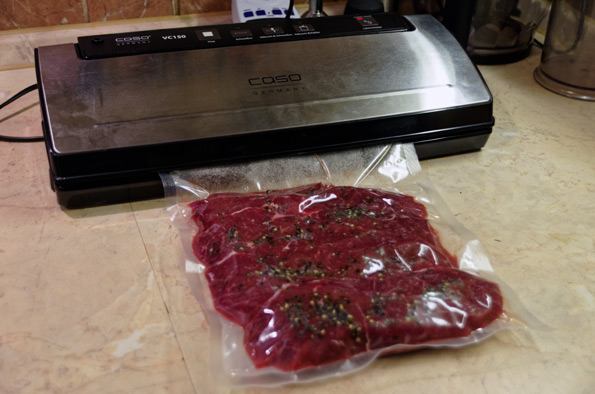 Вакууматор Caso VC 150 проявил себя как высококачественный и удобный в работе прибор. Мы получили большое удовольствие от его тестирования и от достигнутых результатов, создав настоящие деликатесы. Мы оценили гигиеничность, удобство и длительные сроки хранения вакуумированных продуктов, а также в очередной раз поэкспериментировали с технологией су-вид, применив мультиварку в качестве подручного агрегата.