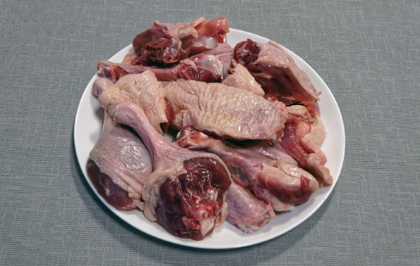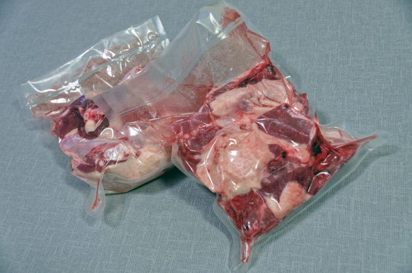 Тушку утки разделили на фрагменты, затем посолили и вакуумировали. Получилось две упаковки.