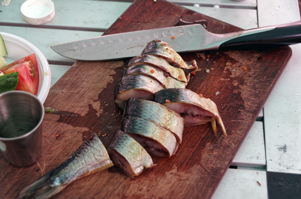 В нашем распоряжении оказалась провесная (провяленная после засолки) селедка, а также свежий сиг.