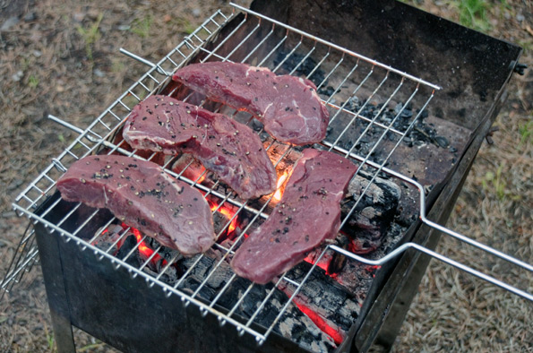 Зачем вообще это нужно и почему сразу не приготовить стейки на углях? Ответ прост: во-первых, без вакуумации мясо могло бы не выдержать столько без холодильника. Во-вторых, среди дегустаторов преобладали любители степени прожарки well done, при заказе которой многие повара сразу начинают горько плакать, так как им жаль портить говядину. Ну что поделать, если у нас национальная специфика такова, что половина населения способна съесть даже пережаренное, но не дотронется до хотя бы слегка сохранившего розовую сердцевину мяса.