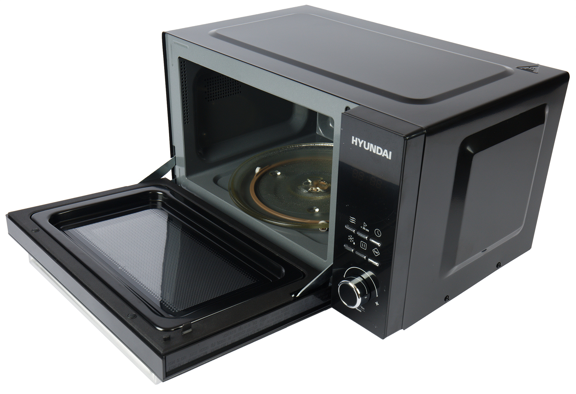 Это блюдо отлично получается в самых обычных микроволновках — даже без конвекции и гриля. Мы готовили такую запеканку в довольно простой модели Hyundai HYM-D2073, с откидной дверцей и в лаконичной микроволновой печи Redmond RM-2303D. Обе СВЧ имеют мощность 800 Вт.