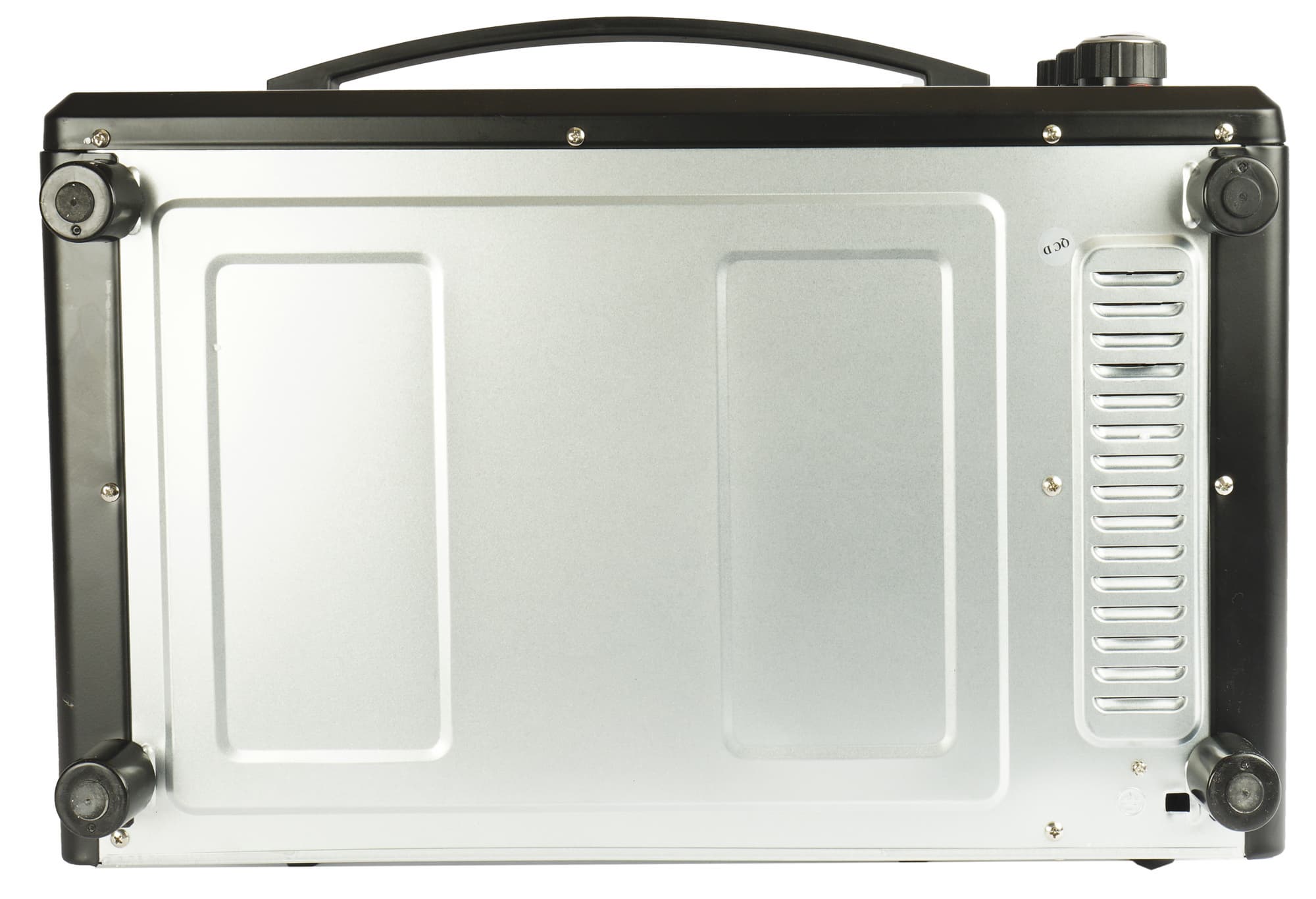 На спинке и боковых стенках расположены вентиляционные отверстия. Шнур электропитания закреплен сзади, подключить шкаф можно к обычной электрической розетке. Над проводом наклейка с перечислением основных технических характеристик. Большую часть задней стенки занимает защитный экран, рядом установлены два ограничителя, которые не дадут придвинуть прибор вплотную к стене. Опирается шкаф на четыре ножки, которые уверенно встают на поверхность и мешают бесконтрольно сдвигать корпус.