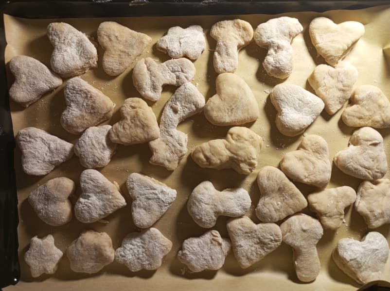 Полученное тесто выложили на доску, замесили и дали полежать полчаса, накрыв пленкой. Затем снова размяли, раскатали, убрали в холодильник на полчаса. Снова раскатали, придали форму стандартным набором, выложили на противень, который застелили пекарской бумагой. Шкаф прогрели до 180 °C и установили в него противень с пряниками на 20 минут. Готовые пряники покрыли тонким слоем растопленного меда.