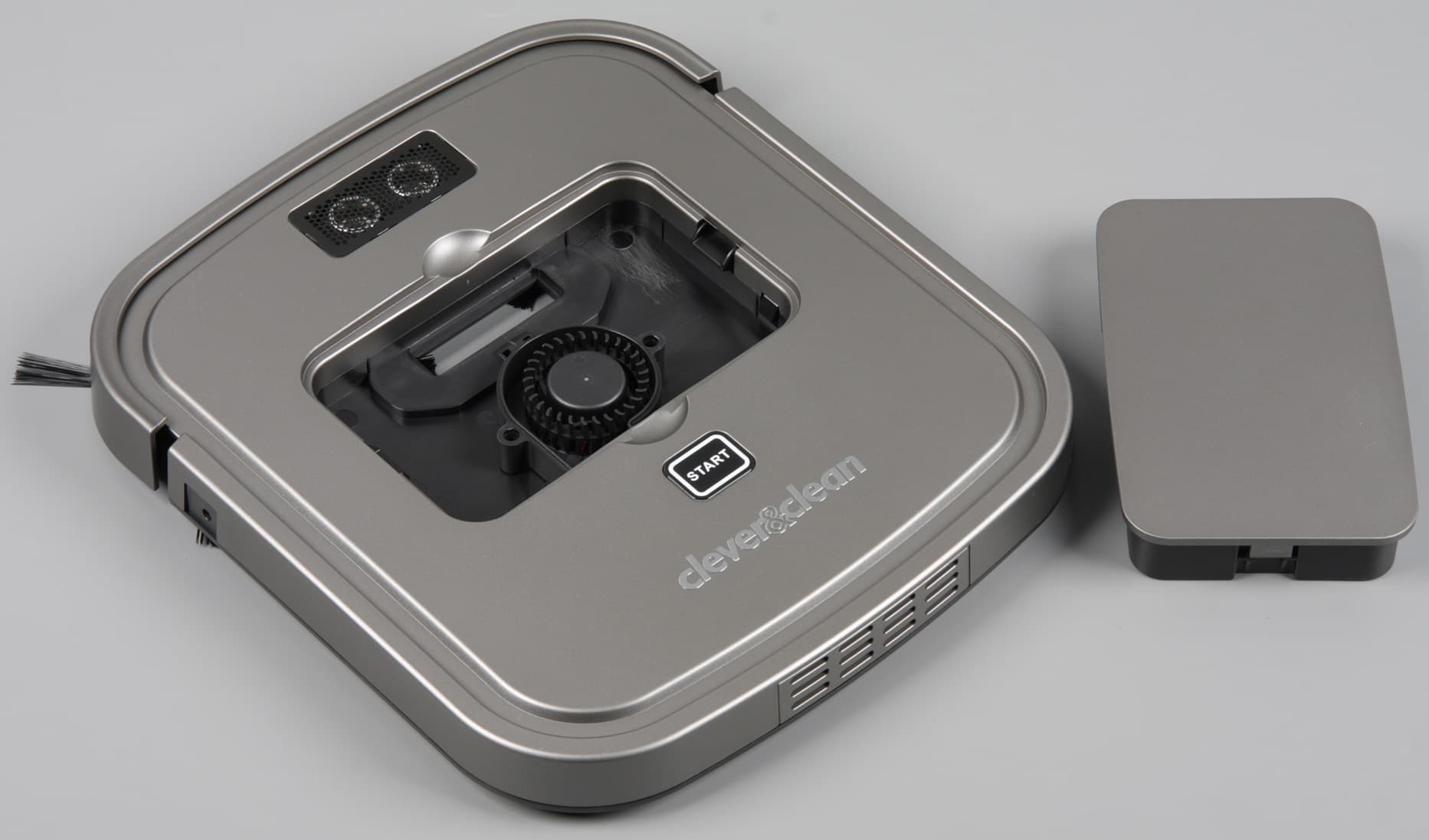 При уборке передние щеточки подгребают мусор к центру, а затем мусор через прямоугольную щель засасывается в пылесборник. Установка и снятие боковых щеток не требуют никакого инструмента, что очень удобно. Этот робот является пылесосом в классическом смысле, так как пыль засасывается непосредственно с очищаемой поверхности, боковые щеточки играют вспомогательную роль и непосредственно в пылесборник грязь не перемещают.