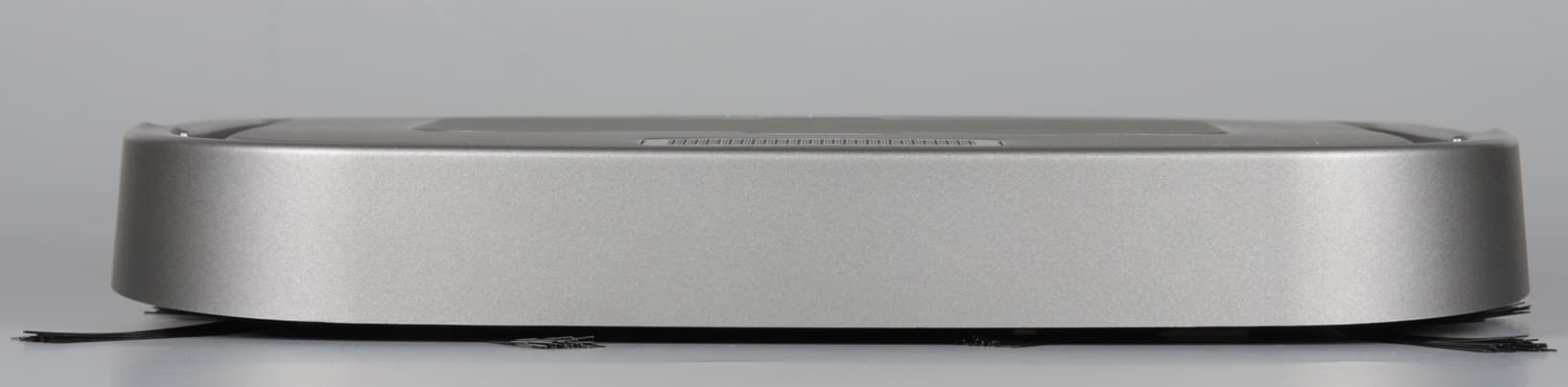 Робот очень низкий, согласно нашим измерениям его высота всего 32 мм. Правда, самая высокая точка находится на корпусе за бампером, поэтому в теории робот может застрять под чем-то с просветом чуть меньше 32 мм. Снаряженная масса робота составляет 830 г. По центру сзади находится выпускная решетка.