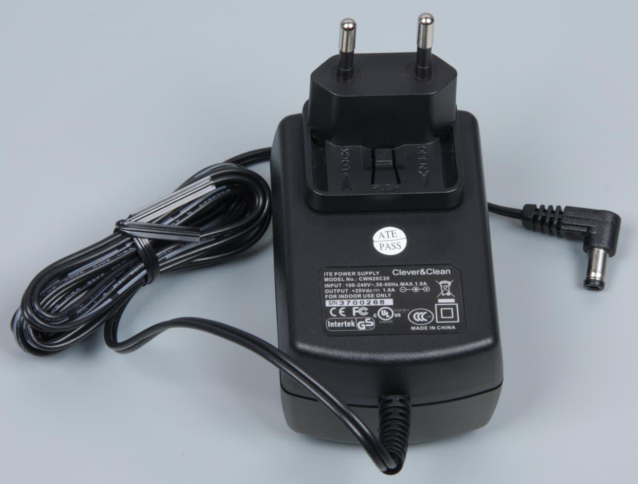 База, на которой пылесос подзаряжается, имеет внешний блок питания, поэтому она относительно небольшая и легкая. (Длина кабеля от БП — 150 см.)