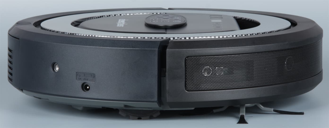 Еще парочка таких датчиков находится на боковой поверхности корпуса ближе к задней части робота. На левом боку больше ничего интересного. На правом боку находятся разъем питания для зарядки минуя базу.