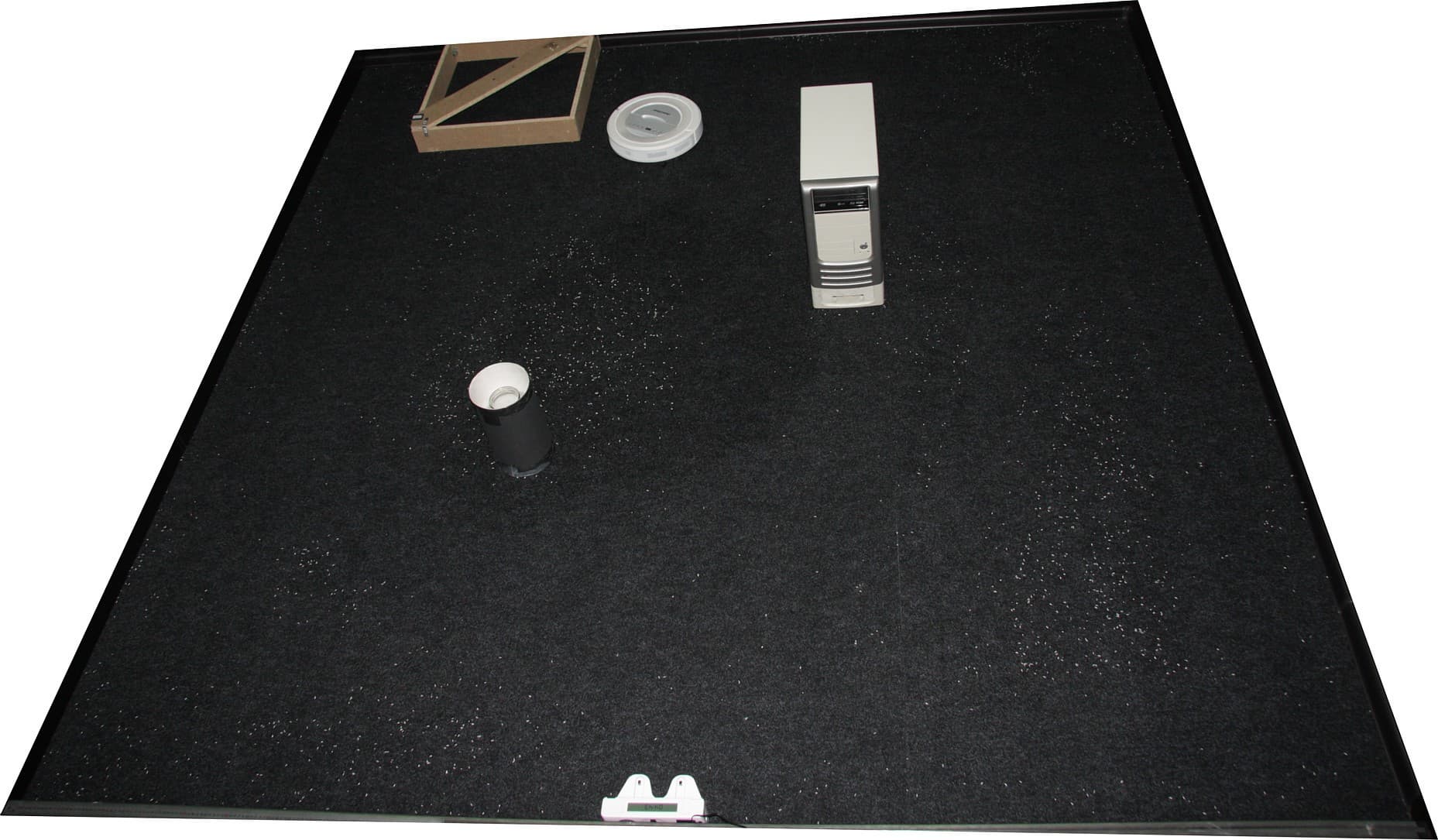 В бесконтактном режиме (по умолчанию включен) робот до препятствий не доезжает, что предохраняет мебель от царапин. В этом режиме качество уборки, в общем-то, остается высоким (см. данные в таблице в строках с указанием «без столкновений»), но вдоль стен и в тесных местах мусора остается все-таки больше. К примеру, так выглядит тестовое поле после 30 минут уборки в бесконтактном режиме: