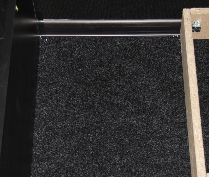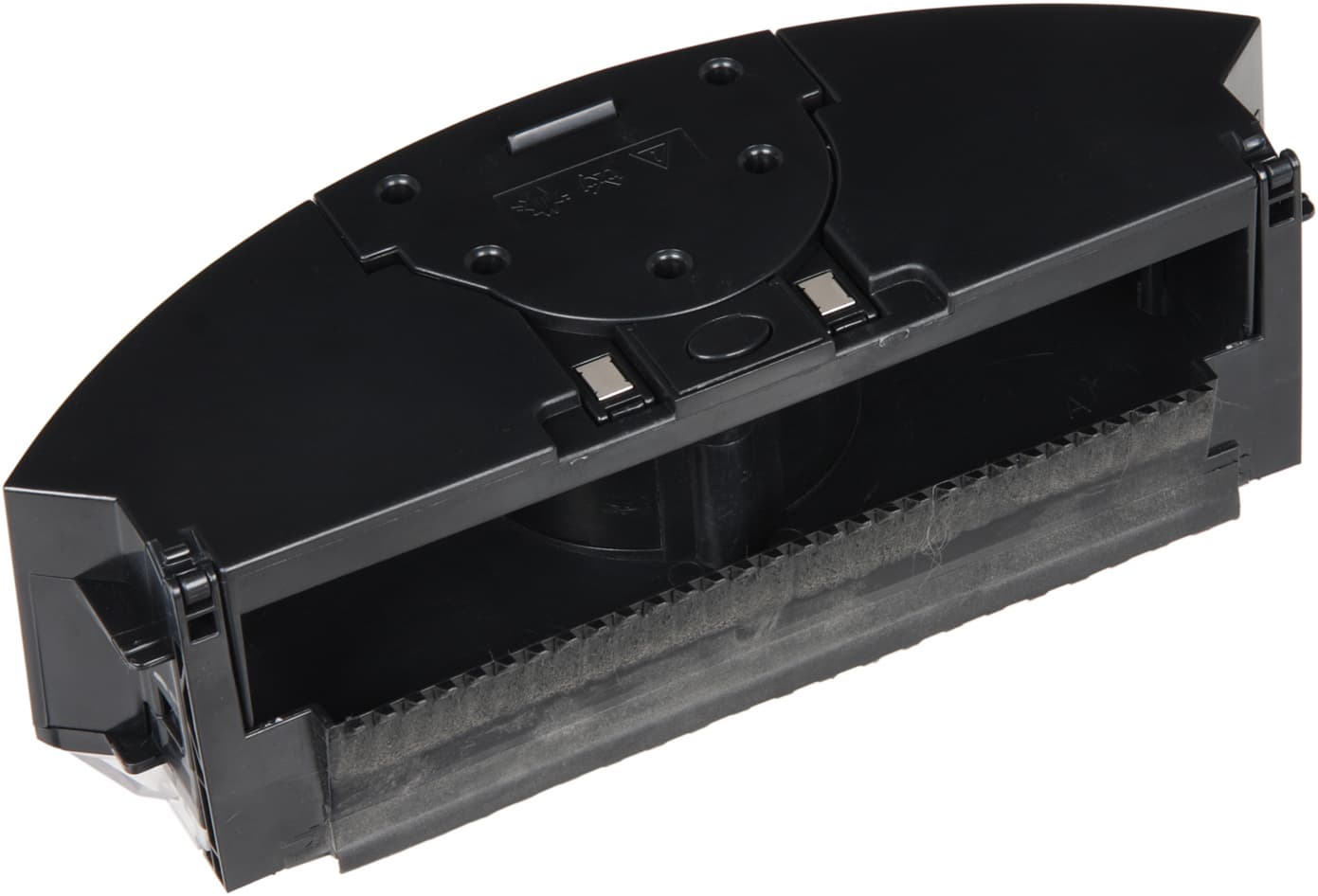 Отсек, в котором находятся основные щетки, закреплен на шарнире, поэтому с ходом примерно в 6-7 мм он следует рельефу пола. Щетка-скребок выступает за боковые направляющие примерно на 1-2 мм, а щетина второй щетки выступает на 4 мм. В итоге достигается хорошая эффективность работы щеток на неровных поверхностях с практически любым типом покрытия. Для очистки щетки вынимаются из отсека.