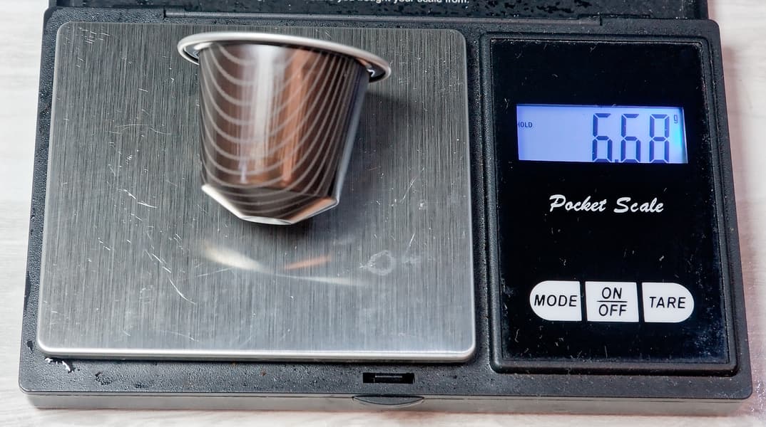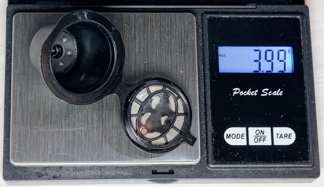 Теперь пытаемся приготовить кофе в многоразовой капсуле. Вес капсулы — 4 г.