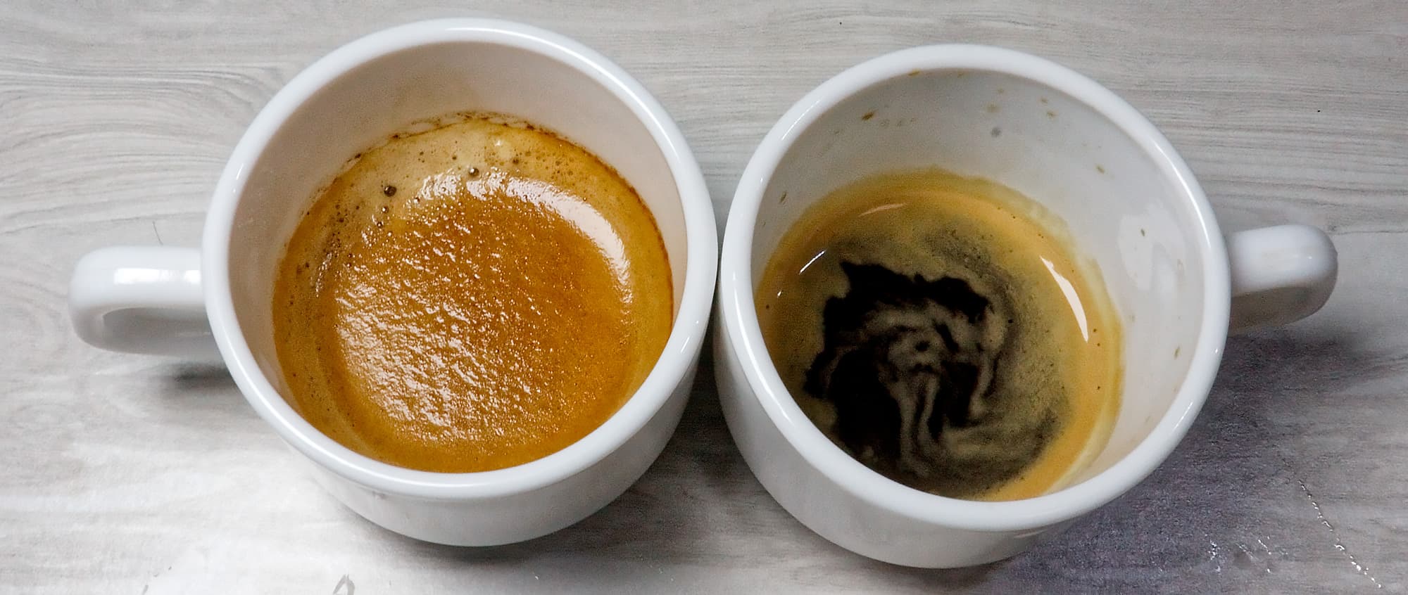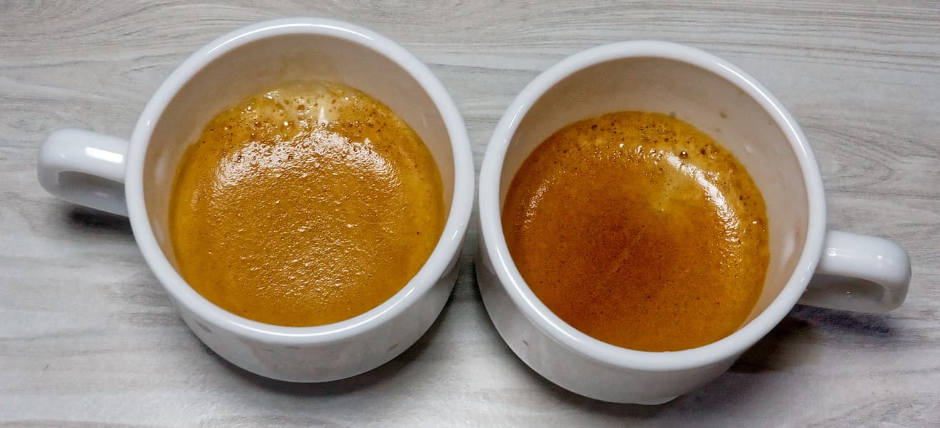 Слева — Nespresso Arpeggio (темная обжарка), справа — «Coffesso».