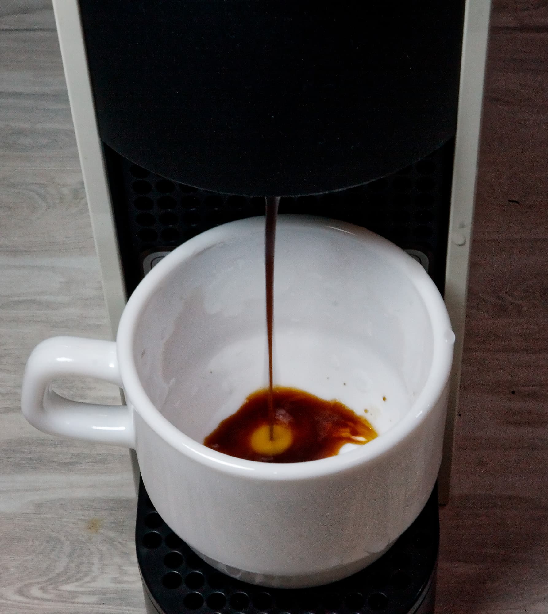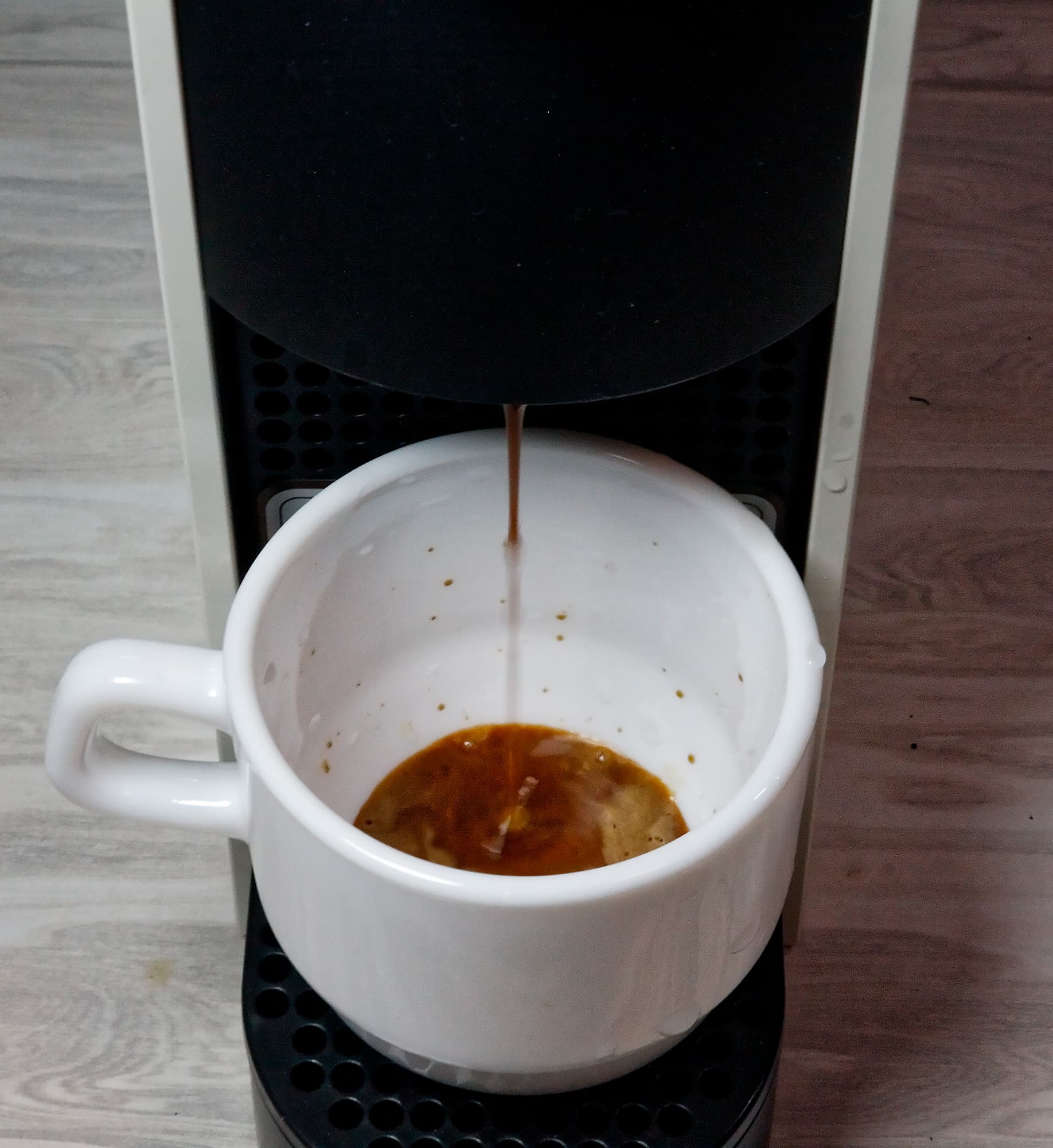 Пробуем на вкус, беря Nespresso за «стандарт качества» — водянистый, но похожий на эспрессо.