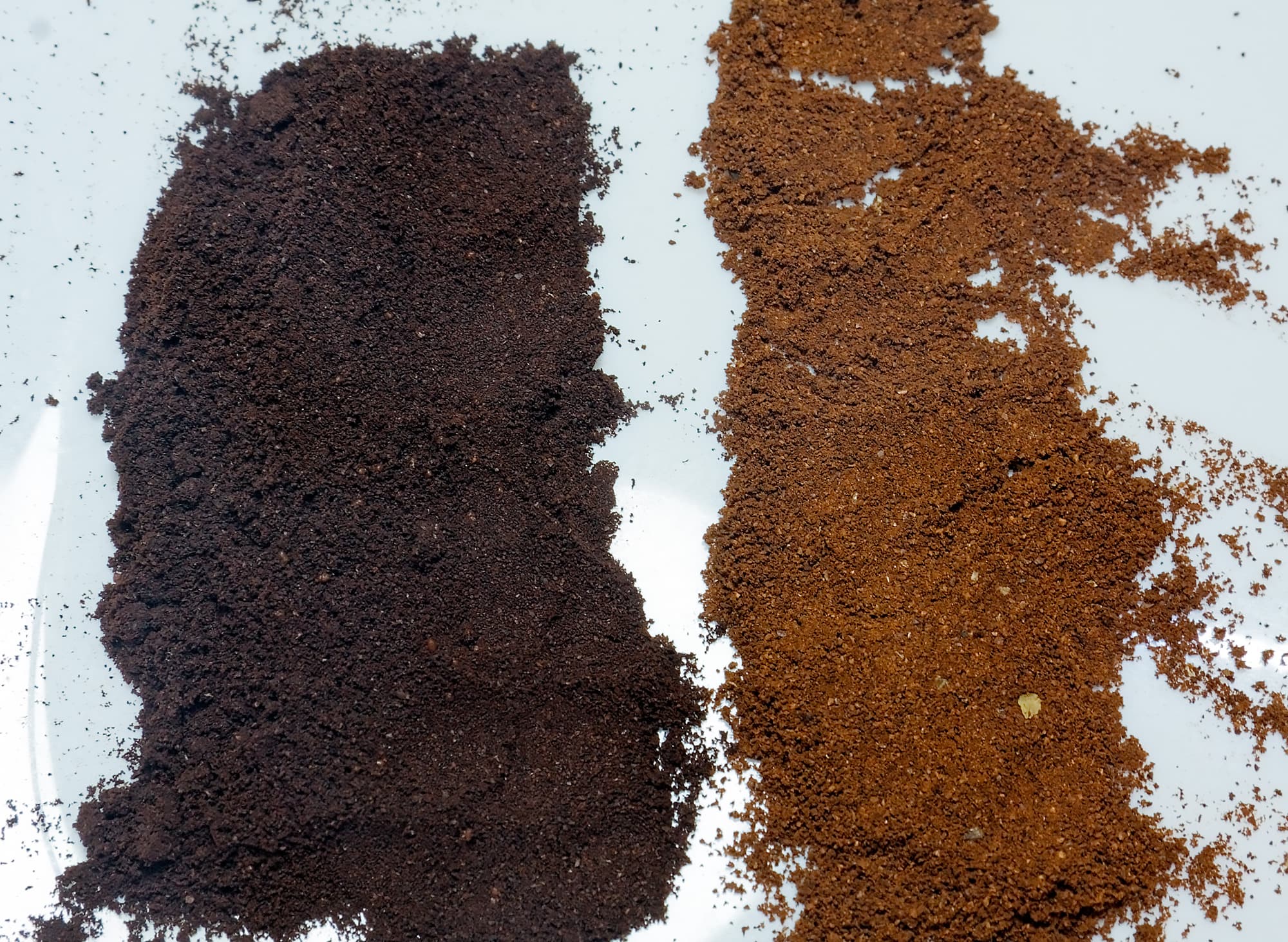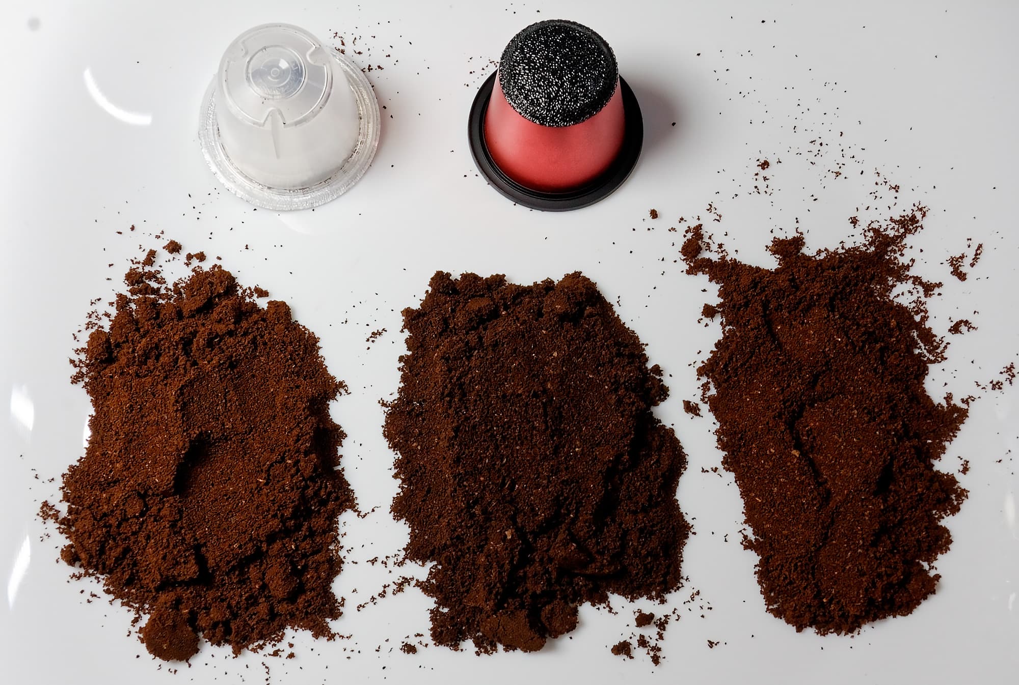 Невооруженным глазом видно, насколько отличается помол (в Nespresso он несколько меньше) и прожарка — мы видим, что в Nespresso цвет кофе гораздо темнее.