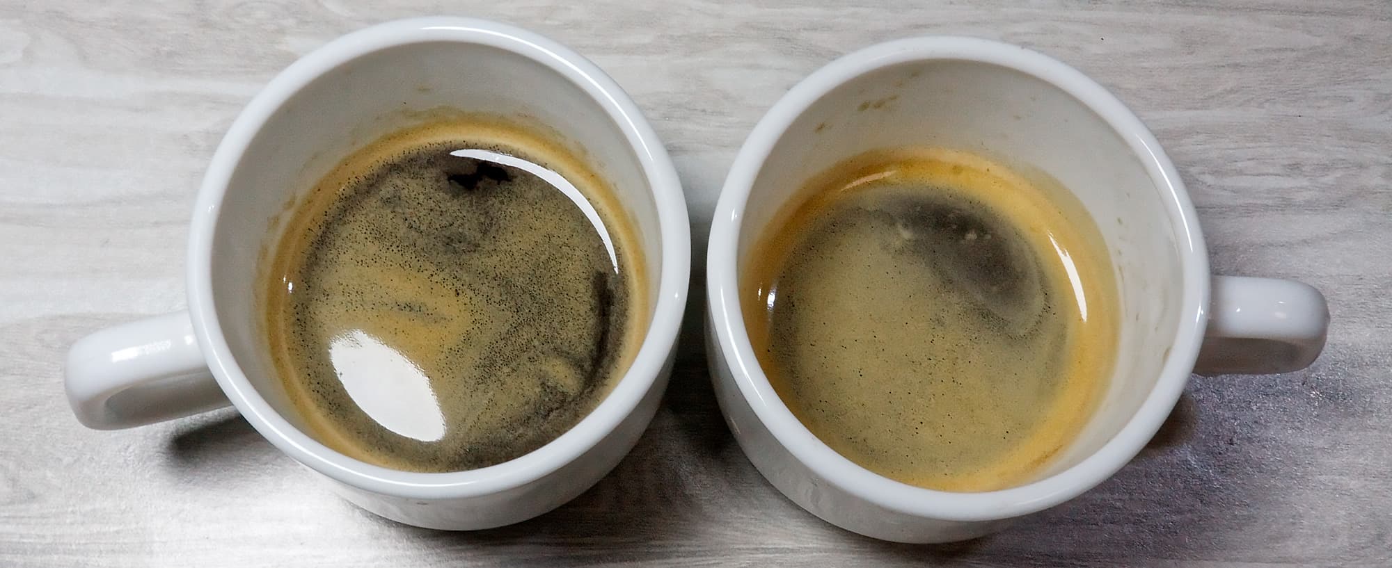 Слева — Nespresso Arpeggio (темная обжарка), справа — «Живой кофе».