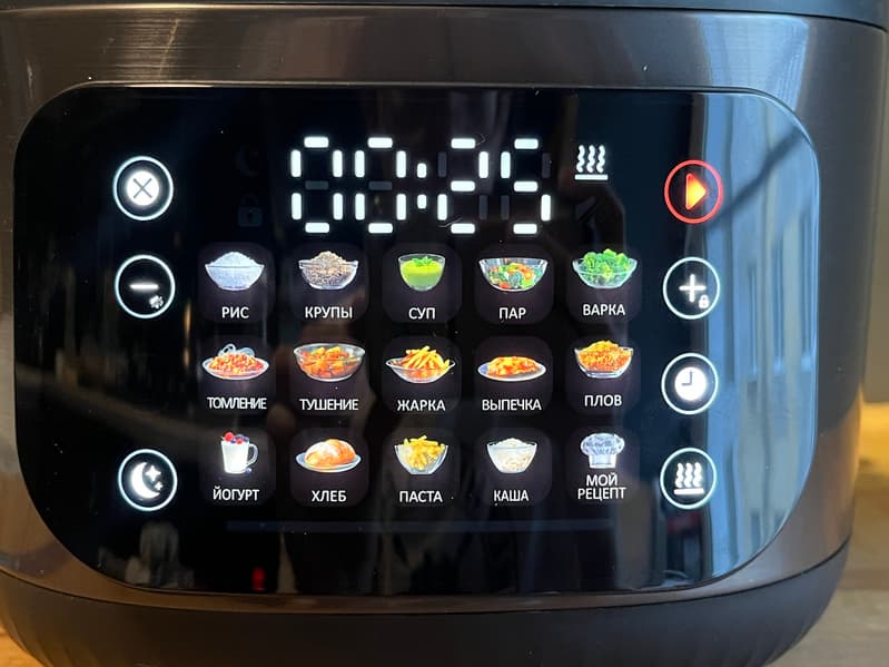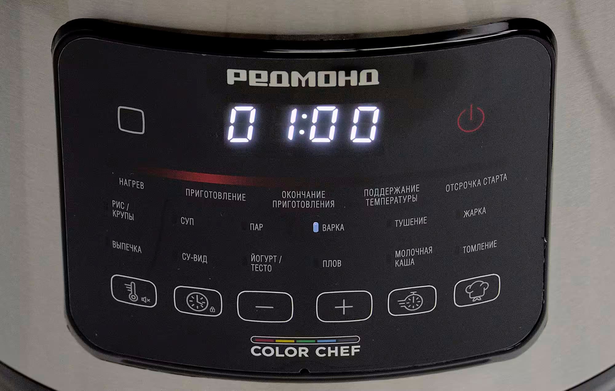 Сразу спойлер: нам понравилась во время тестирования эта миниатюрная мультиварка с сенсорной панелью управления, LED‑дисплеем и цветовой индикацией этапов приготовления Color Chef: красный — ожидание, оранжевый — готовка, зеленый — завершение, голубой — подогрев, фиолетовый — отсрочка старта.