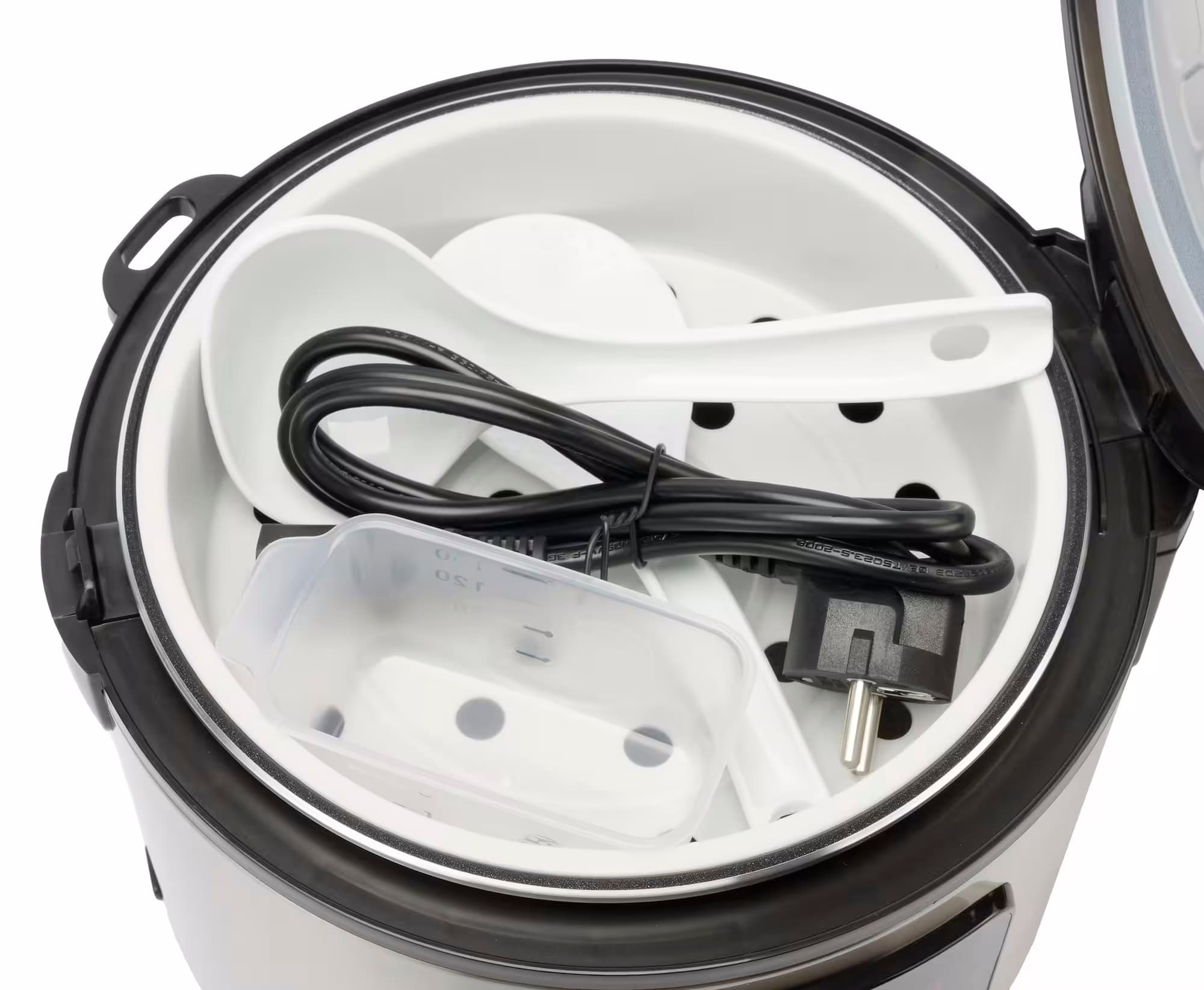 Управление интуитивно понятное: кнопки снабжены подписями, можно отключить звуковые сигналы, заблокировать панель, настроить время и температуру (функция «Мастершеф Лайт»), использовать отсрочку старта и автоподогрев до 12 часов. Предусмотрена возможность корректировки параметров в процессе готовки. Мультиварка удобна не только для небольших кухонь, но и для тех, кто не любит готовить с запасом и для тех, кто нуждается во второй мультиварке для отдельных задач.