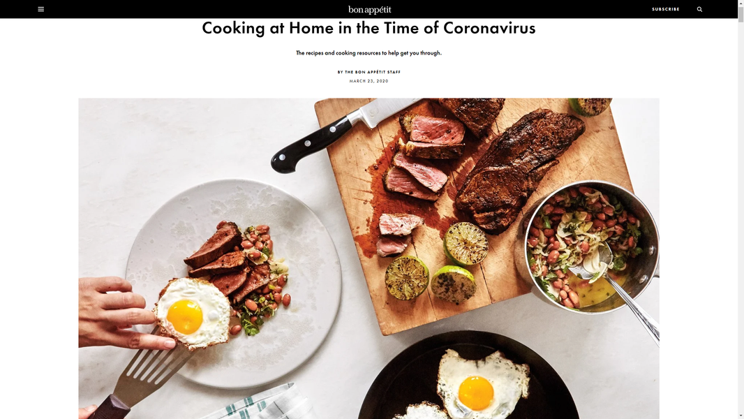 Масштабный материал Bonappetit «Готовим дома во времена коронавируса». Огромное количество рецептов, отсортированных по темам: