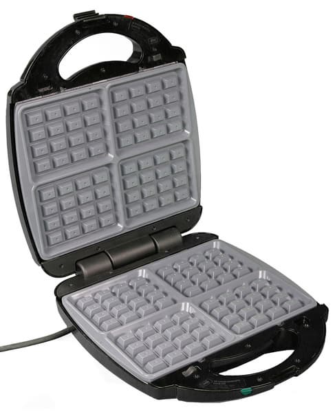 Отдельно отметим миниатюрные грили, предназначенные специально для приготовления выпечки (их же можно встретить под названием «вафельница» или «мультипекарь». Такие устройства позволят без особого труда приготовить вафли, горячие бутерброды, «орешки» со сладкой начинкой и прочую несложную выпечку — в зависимости от того, какими панелями оснащен данный конкретный прибор. Впрочем, некоторые производители выпускают приборы для выпечки, оснащенные целым набором различных сменных панелей, что существенно расширяет возможности устройства.
