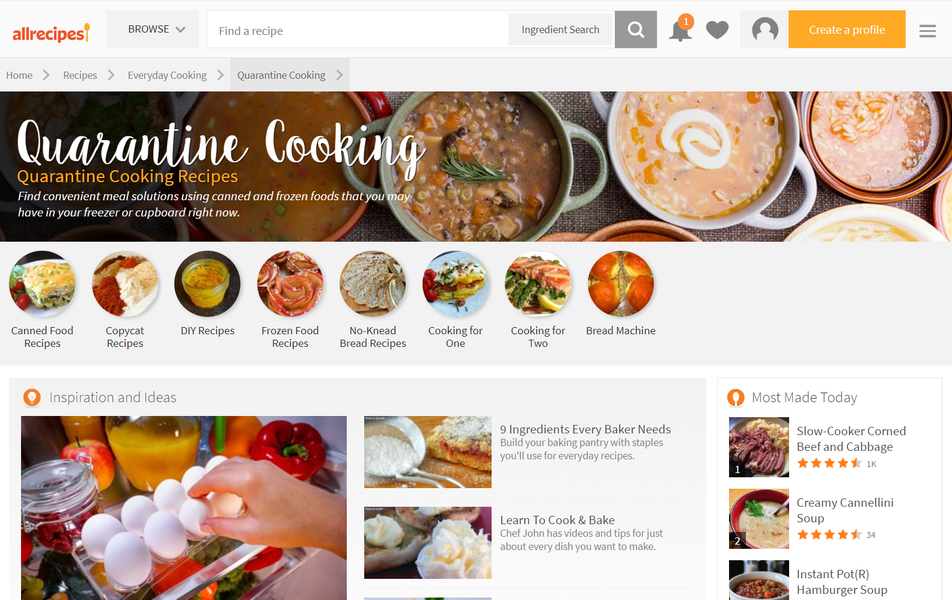 Благо, множество онлайновых ресурсов (к сожалению, практически все они англоязычные) подготовили подборки «карантинных рецептов» и советов, как справиться с возникшей ситуацией.