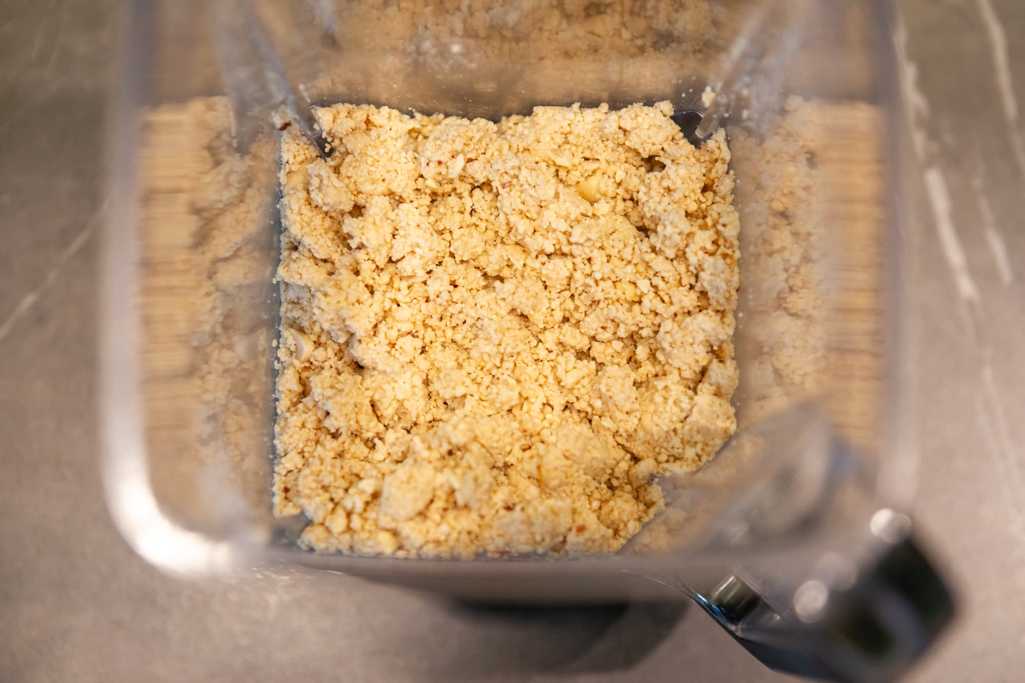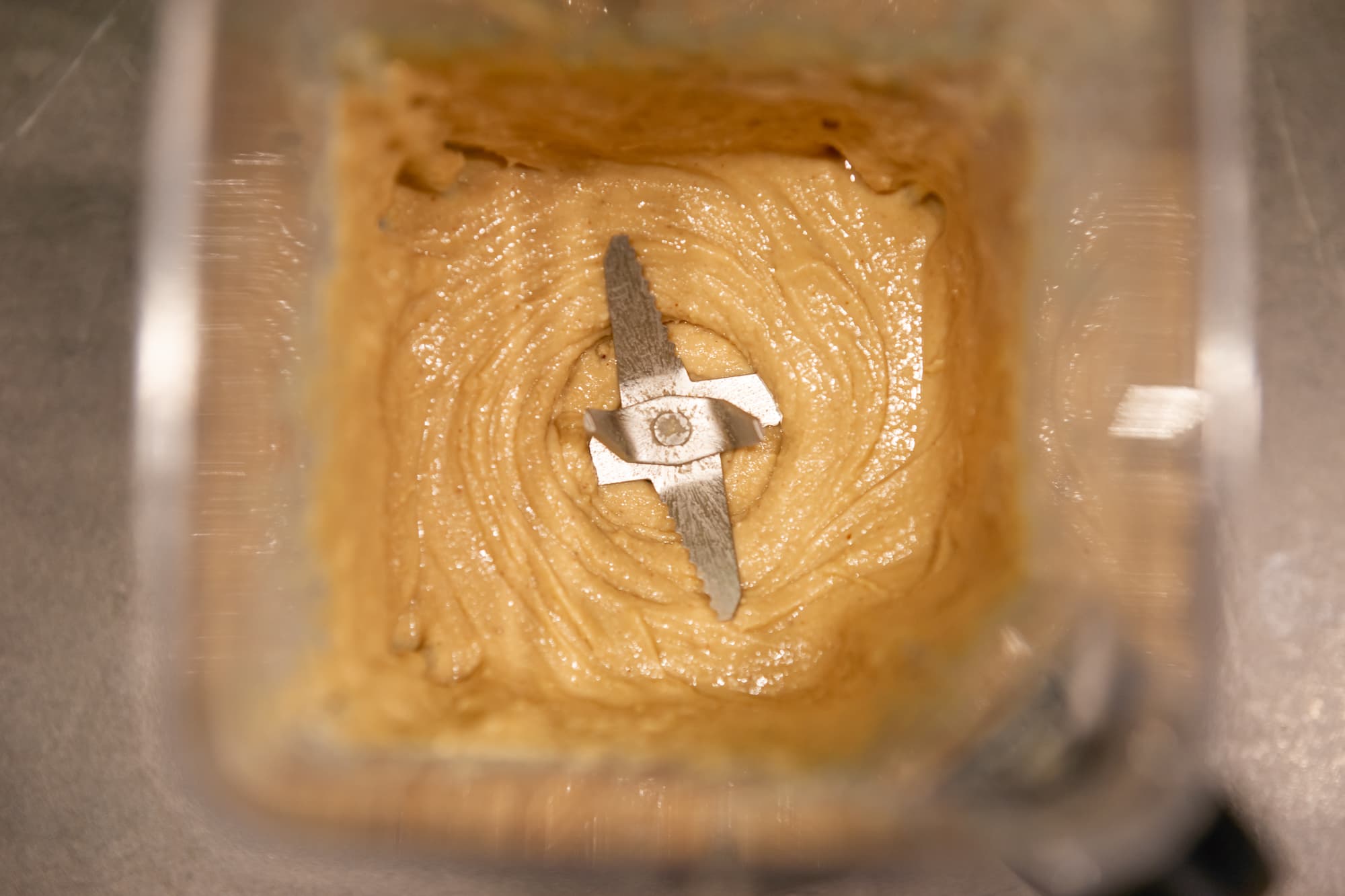 В следующий заход мы снизили скорость до 2-й и далее на ней и продолжали — при более высокой скорости пасту разбрасывало по стенкам кувшина, а измельчения арахисовых осколков должным образом не происходило.