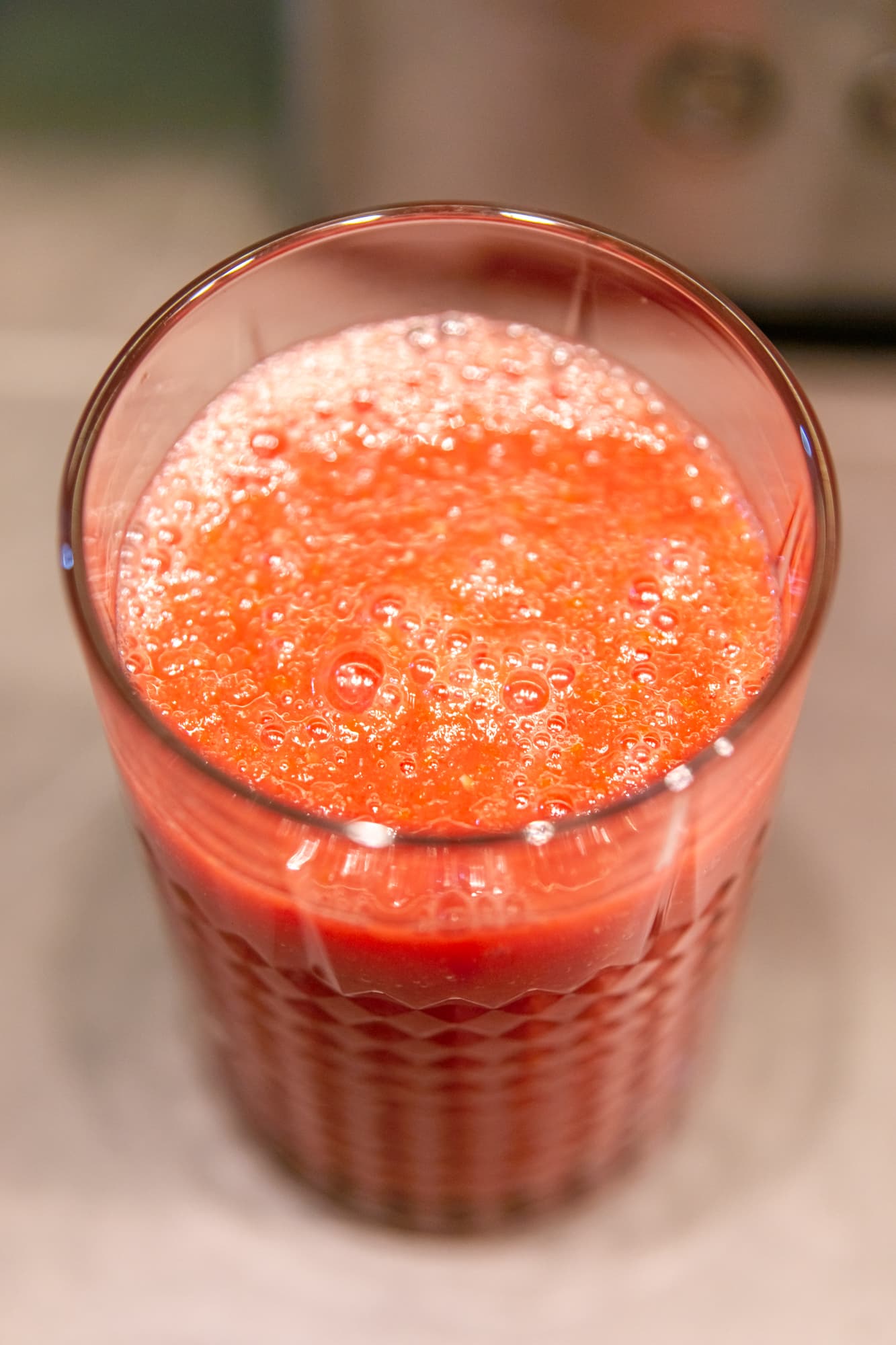 Результат выше среднего: густая плотная воздушная масса с очень мелкими вкраплениями размолотых семечек и кожицы.
