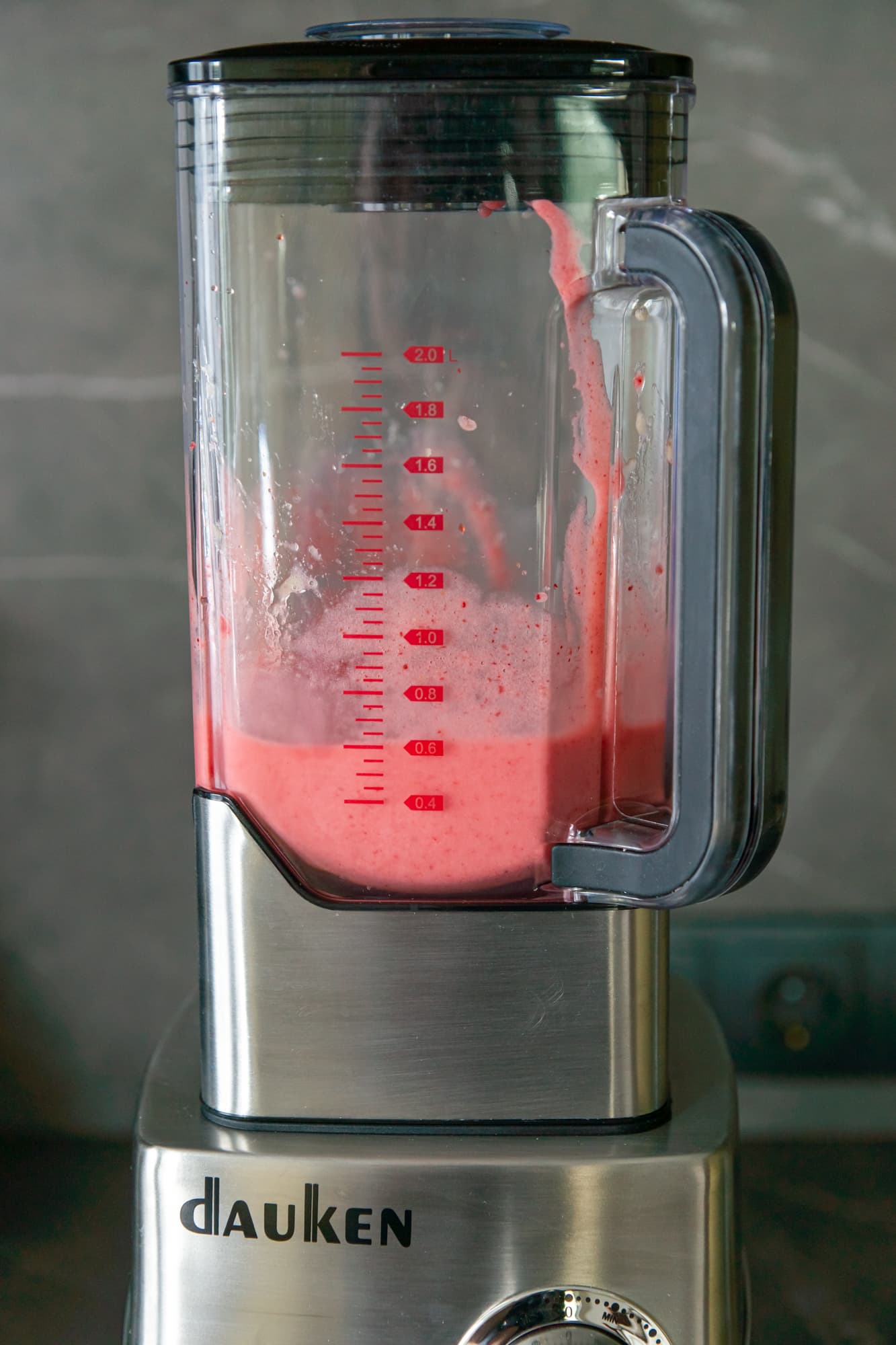 Про управление рассказывать особо нечего, оно удобно и элементарно. Диапазон скоростей достаточен, как для измельчения и взбивания мягких, вязких продуктов, так и для обработки менее сочных плодов и резвого дробления сухих твердых ингредиентов, включая лед и замороженные ягоды. Dauken MX950 Pro справляется быстро и до перегрева во время тестов мы не дошли, но следует помнить, что устройство после 2 минут работы требует минуту отдыха и подобных циклов оно готово выдержать только 4 подряд.