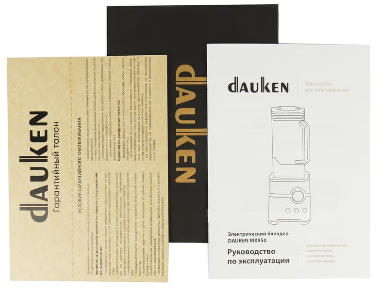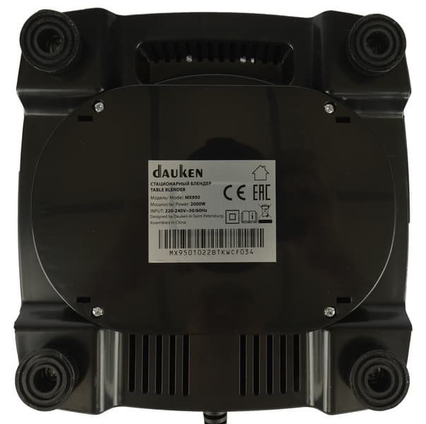 Как и любой другой крупный стационарный блендер с большим кувшином, для установки Dauken MX950 Pro потребует немало места: высота самого прибора 47,5 см, плюс около 30 см стоит оставить для манипуляций толкателем. Весит вся конструкция почти 5 кг.