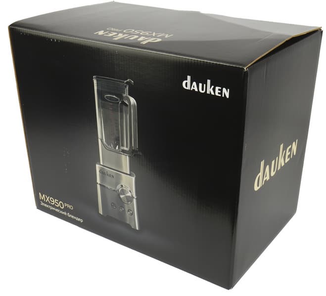 Блендер Dauken MX950 Pro приехал к нам упакованным одновременно в две коробки. Первая упаковка из простого коричневого картона ничем не примечательна и никакой информации об устройстве не содержит.