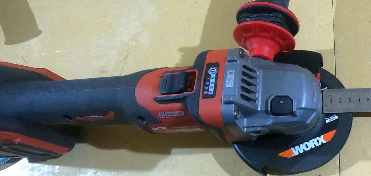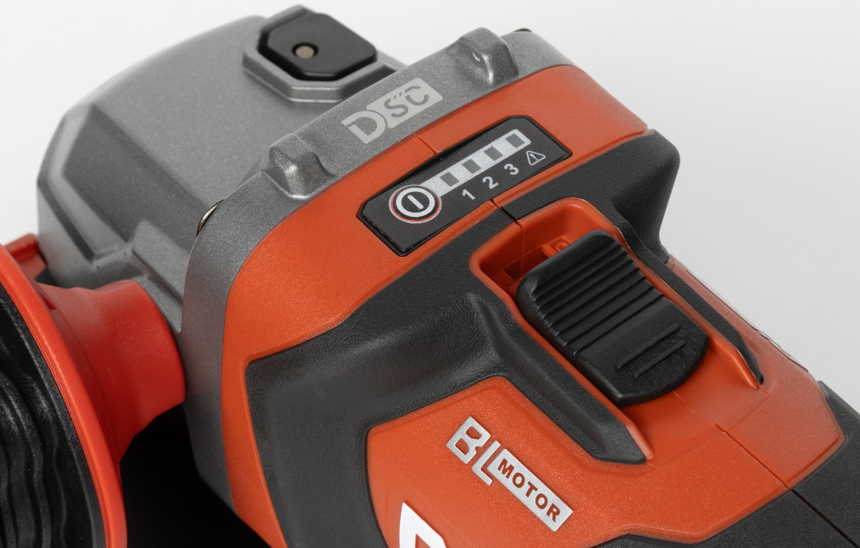 Рассматриваемая углошлифовальная машина работает на бесщеточном двигателе.