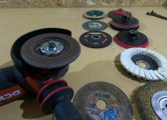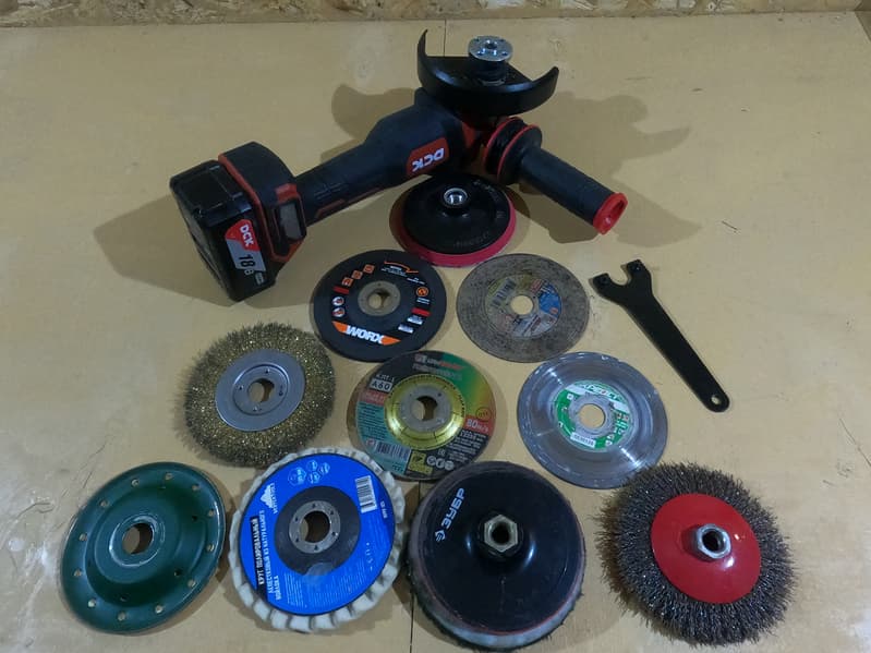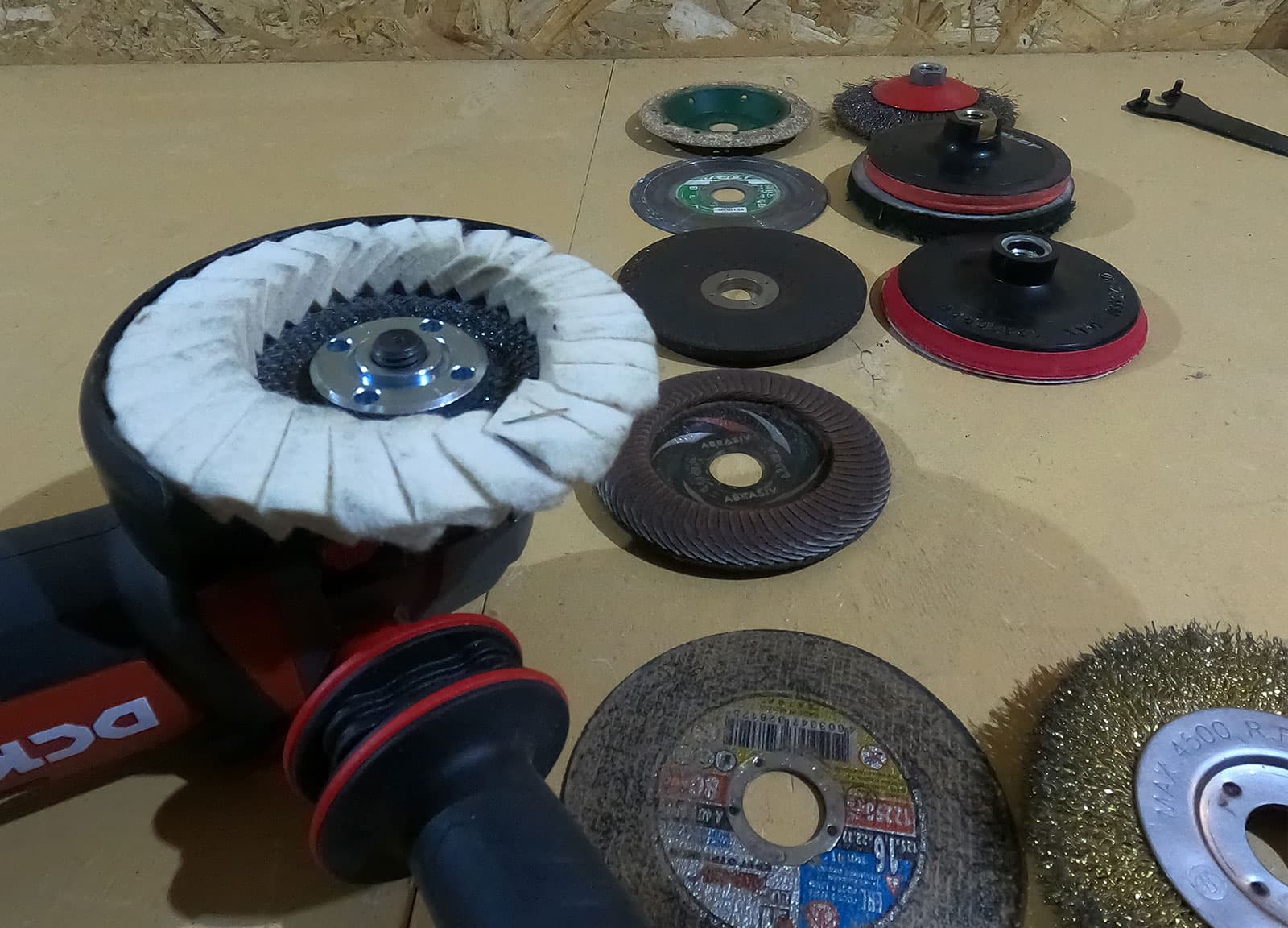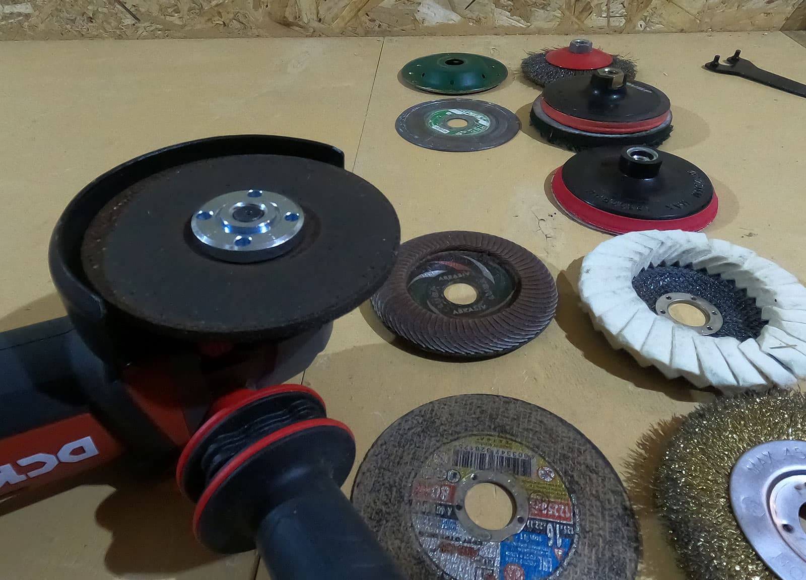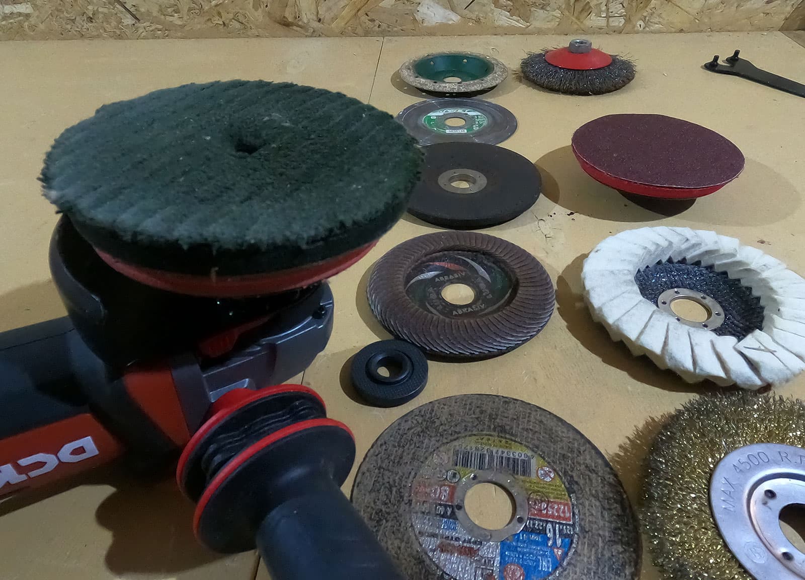 Для тестирования УШМ были приготовлены насадки разного назначения — по дереву, металлу и бетону.