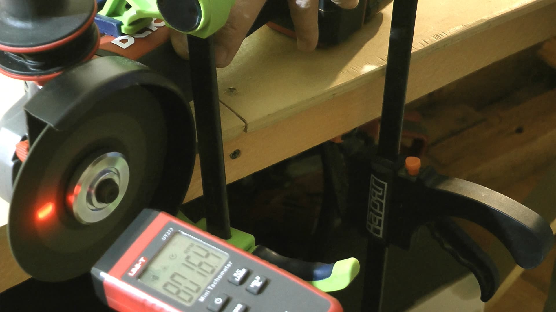 Следующий ролик многократно ускорен и снабжен счетчиком времени. Можно видеть, что аккумулятора хватило почти на 13 минут работы шлифовальной чашкой по дереву.
