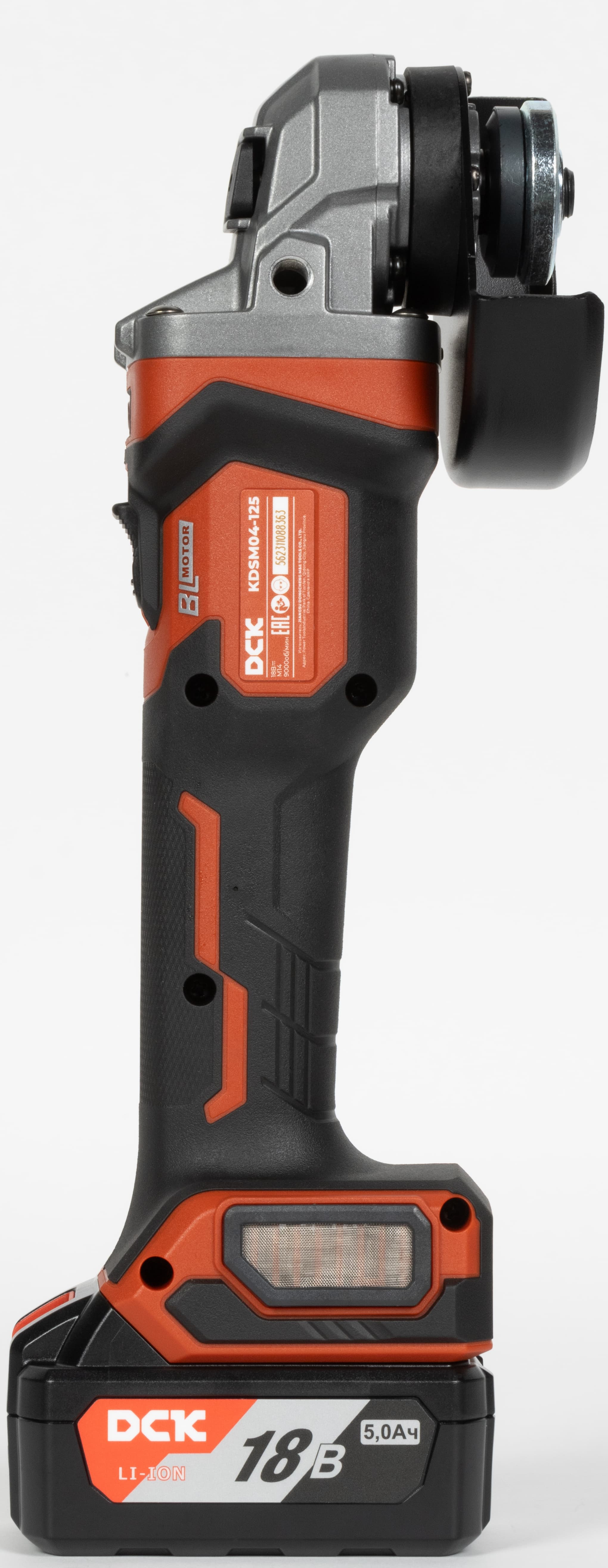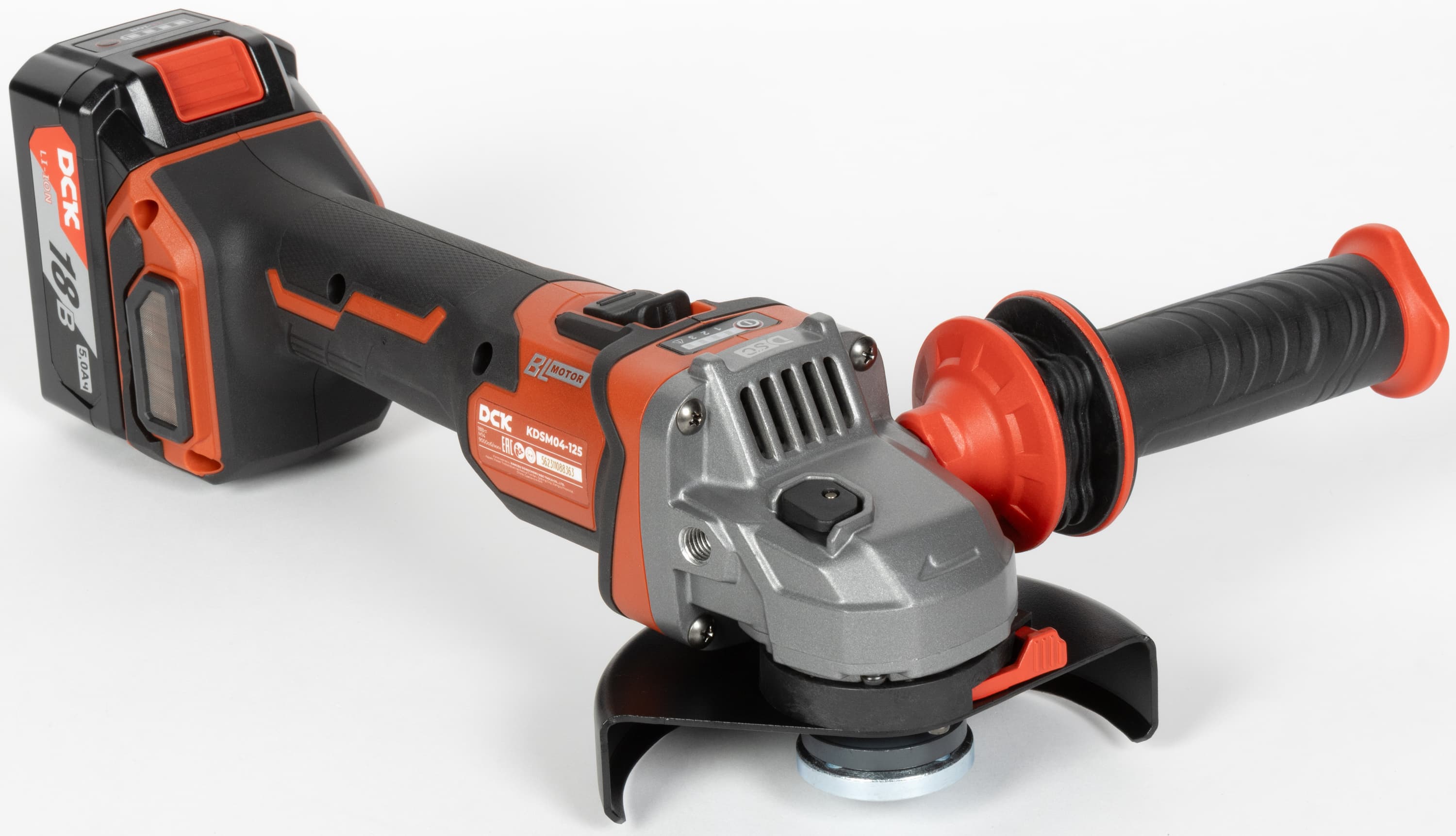 DCK KDSM04-125 — удобный инструмент для недолгой разовой работы без необходимости тянуть питание. Мощность бесщеточного двигателя позволяет резать и шлифовать любые материалы. Болгарка отличается возможностью регулировки скорости вращения насадки, крупной рукоятью и тремя степенями защиты, которая отключает питание двигателя при заклинивании, перегрузке и падении.
