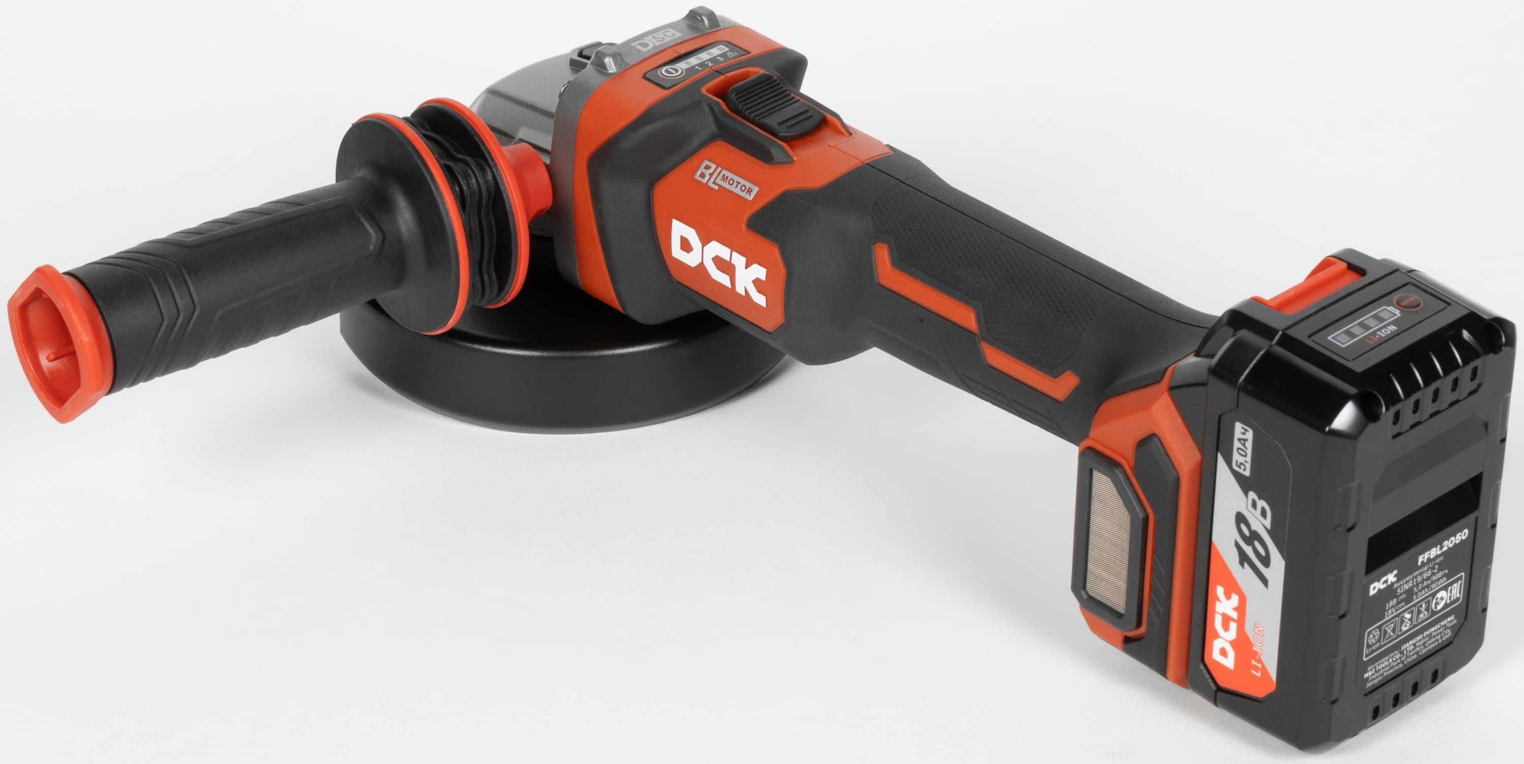 Продолжая занимательное изучение продукции бренда DCK, перейдем к такому востребованному типу инструмента, как УШМ. Или, по-нашему, к болгаркам. Начнем с наиболее «продвинутой» модели, которая имеет настройку скорости и работает от аккумулятора.