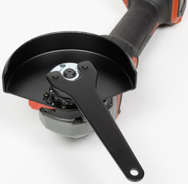 Для того чтобы изменить положение защитного кожуха, ключ не нужен. Достаточно нажать специальный подпружиненный рычаг красного цвета, и кожух легко поворачивается на нужный угол. В некоторых пределах, конечно.