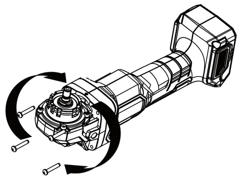 Кстати, не только рукоять инструмента можно прикрепить с разных сторон. Похожее можно проделать целиком со всем блоком редуктора! Достаточно отвинтить четыре винта, и головку можно повернуть на 180°. Таким образом, выключатель окажется не сверху, а снизу. Только не забудьте вернуть винты на место.