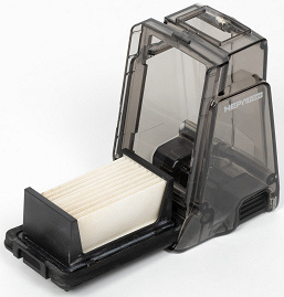 В результате работы пылесоса, захватываемый им воздух вместе с пылью поступает из рабочей зоны прямо в отсек-сборник, проходя очистку через фильтр.