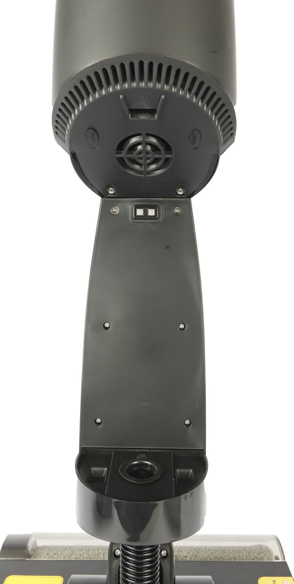 На крышке резервуара есть два контакта, обеспечивающие работу датчика уровня жидкости: при превышении заданного объема грязной воды пылесос сигнализирует о необходимости опорожнения бачка. В большинстве знакомых нам пылесосов к датчику подключены два электрода, опущенные внутрь емкости, здесь же — только один.