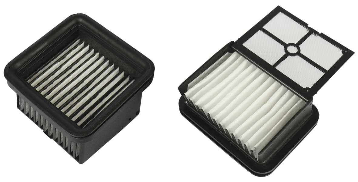В комплекте с пылесосом поставляются целых три фильтра: один уже установлен, а два упакованы отдельно. Они представляют собой гармошку HEPA-элемента, которая защищена откидывающейся капроновой сеткой на пластиковом каркасе.