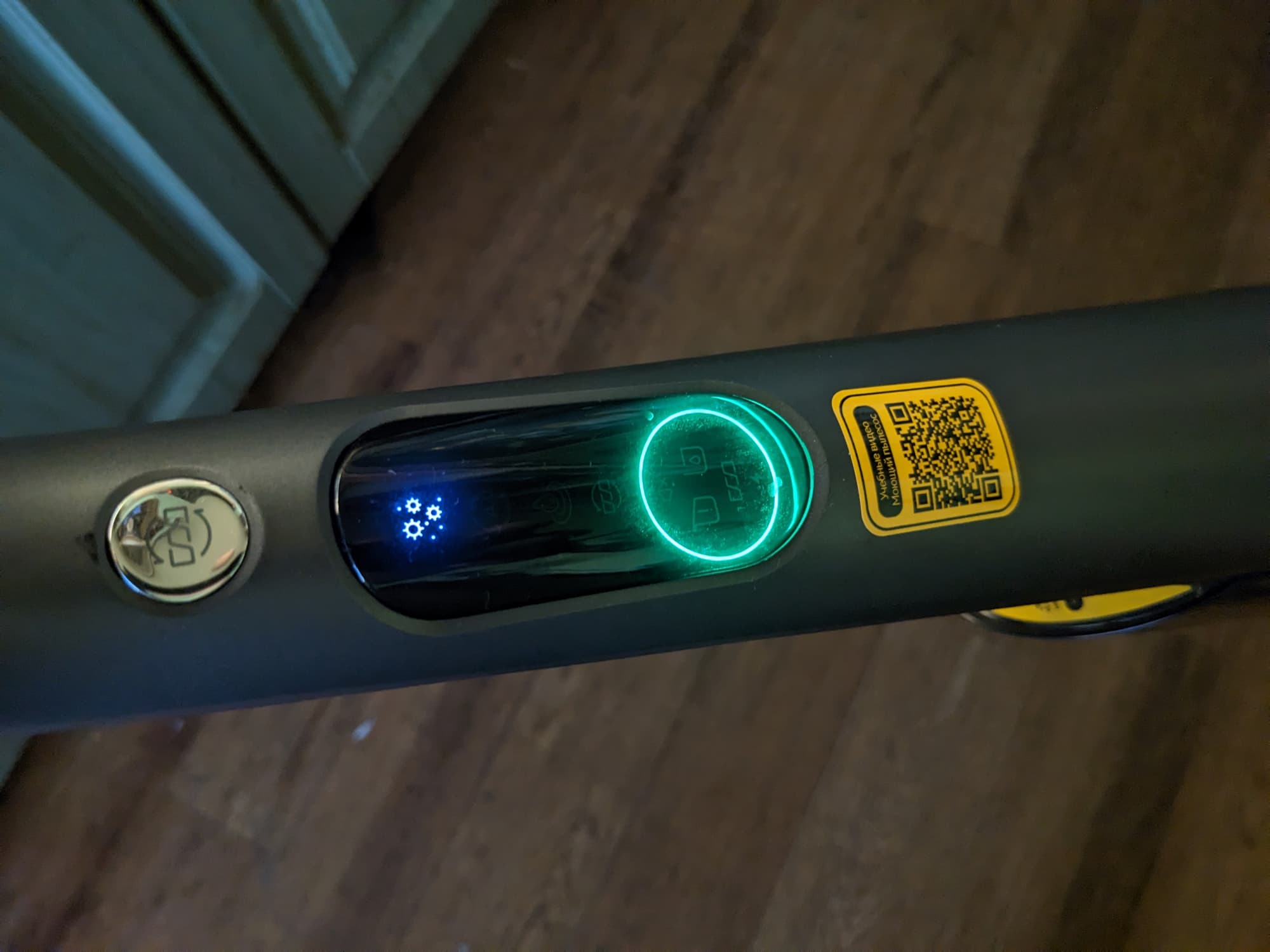 Чуть выше кольца расположены индикаторы трех рабочих режимов и функции самоочистки. Внутри же работают предупреждающие лампочки: пылесос может сообщать об опустошении резервуара для чистой воды, заполнении мусоросборника и проблемах с движением щеток. Здесь же можно видеть сигналы отключения голосового ассистента и процесса зарядки.