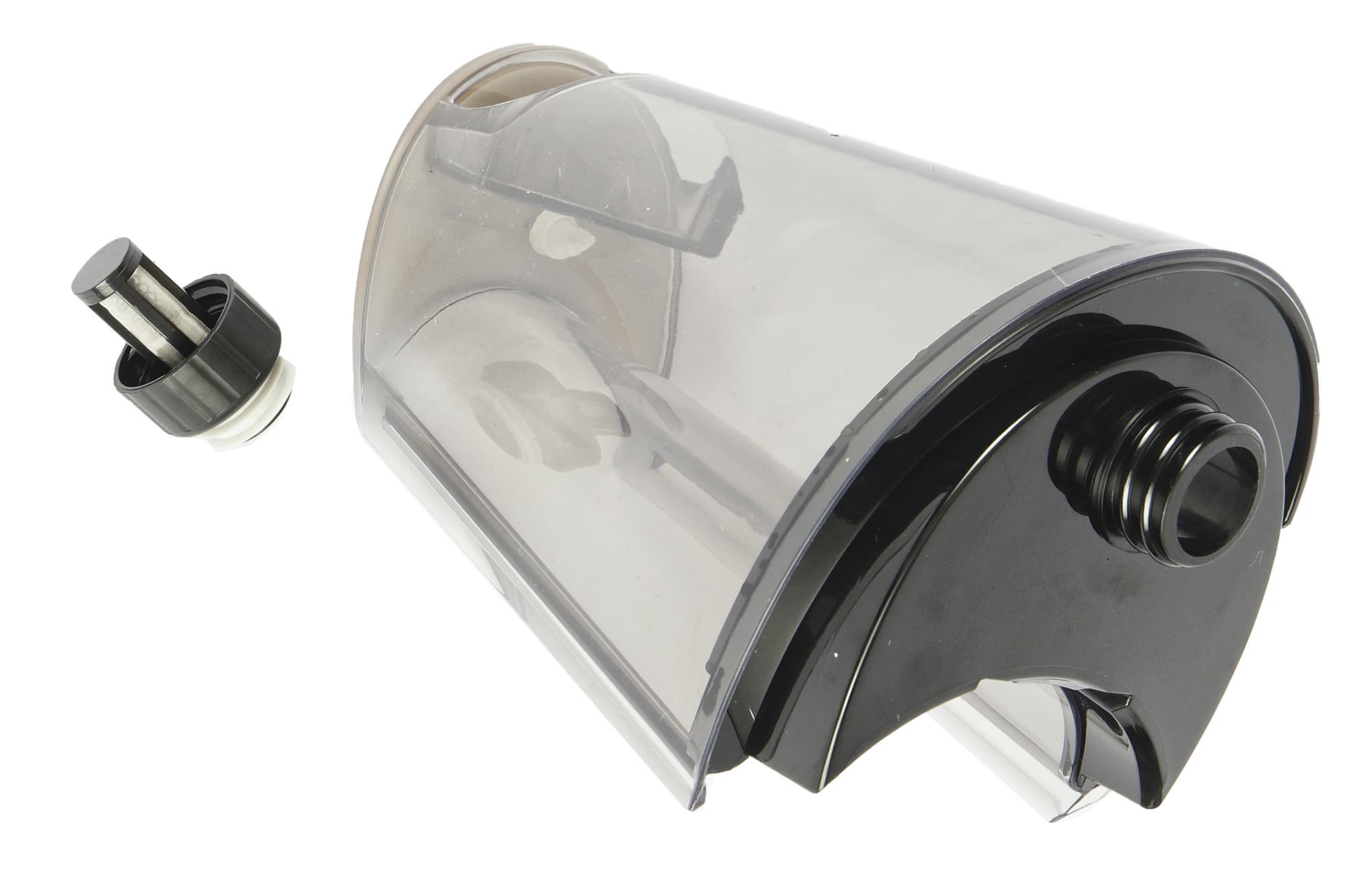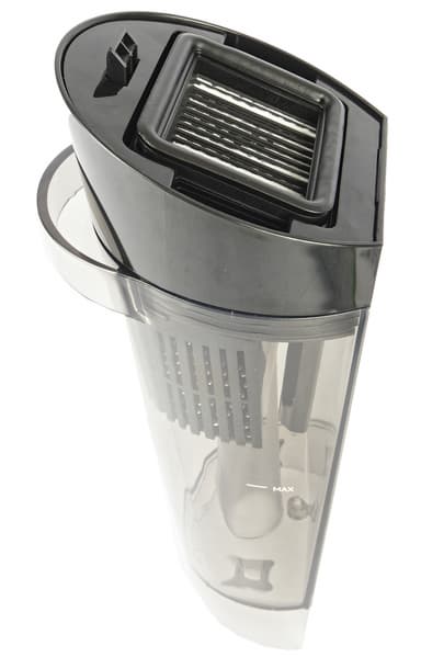 Пластиковый резервуар для чистой воды устанавливается в верхней части корпуса. Он снабжен пробкой со встроенным клапаном и микросеткой, которая защищает устройство от случайно попавших в бачок загрязнений из водопровода.