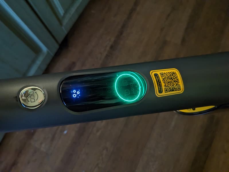 Под кнопками расположен овальный дисплей из темного пластика. Самая заметная его часть — светодиодное кольцо, сообщающее пользователю о состоянии аккумулятора. Зеленый свет индикатора свидетельствует о готовности к работе, а при падении заряда до минимума цвет изменяется на красный.