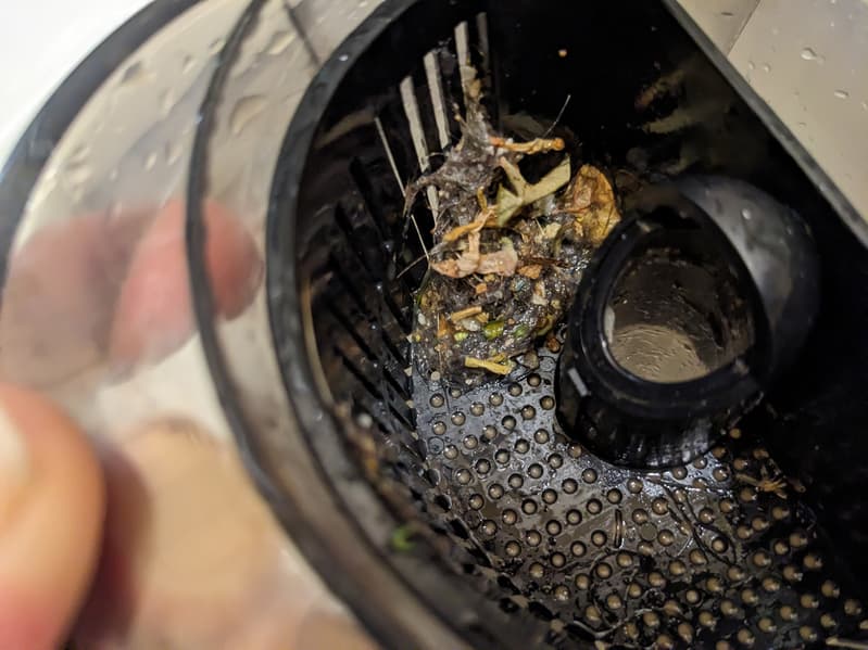 В верхней части контейнера находится съемный фильтр грубой очистки: на нем остается крупный мусор, который может создать проблемы в канализации.