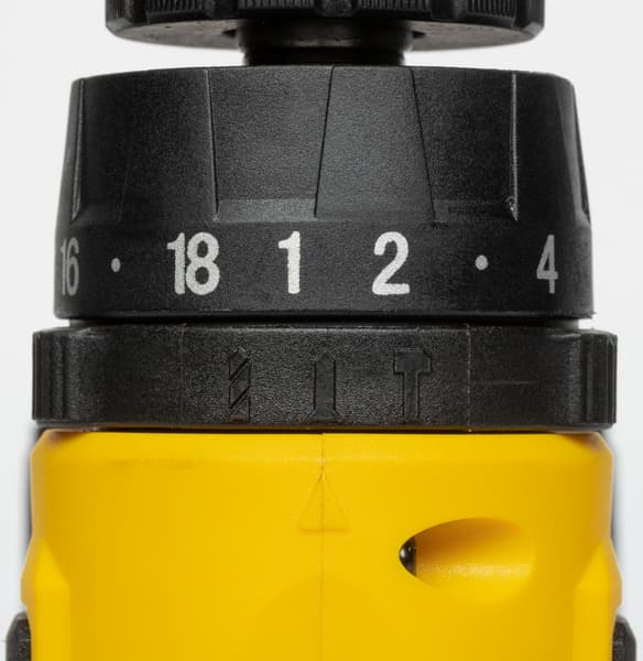 Кольцо с цифрами и делениями регулирует крутящий момент, каждое положение фиксируется с еле слышным щелчком. Если в обычных шуруповертах крайнее деление всегда переводит шуруповерт в режим сверления с отключением «трещотки», то в этом инструменте подобная функция организована иначе.