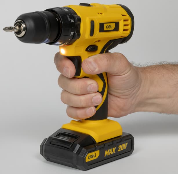 Это типичнейший представитель современного шуруповерточного лагеря: рубленые формы, яркий окрас и шаблонное расположение органов управления.