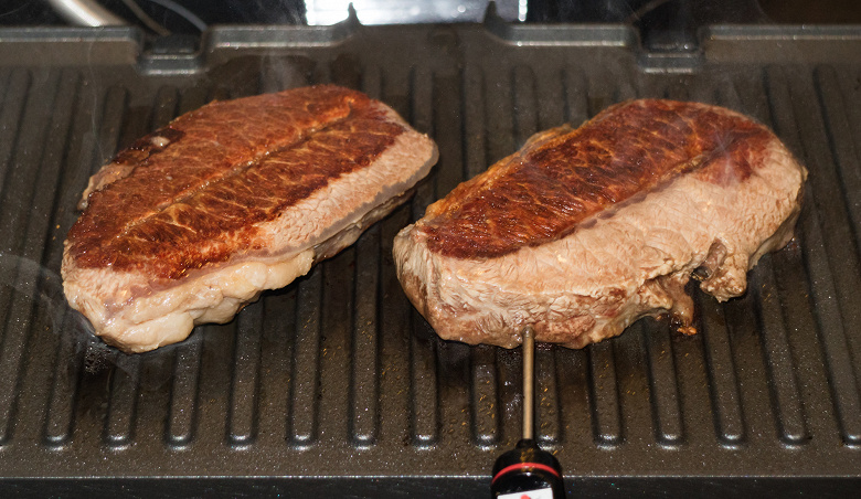 Напоследок, когда стало понятно, что гриль De’Longhi CGH1012D достаточно мощен для быстрой обжарки мяса, мы вооружились термометром и приступили к тесту.