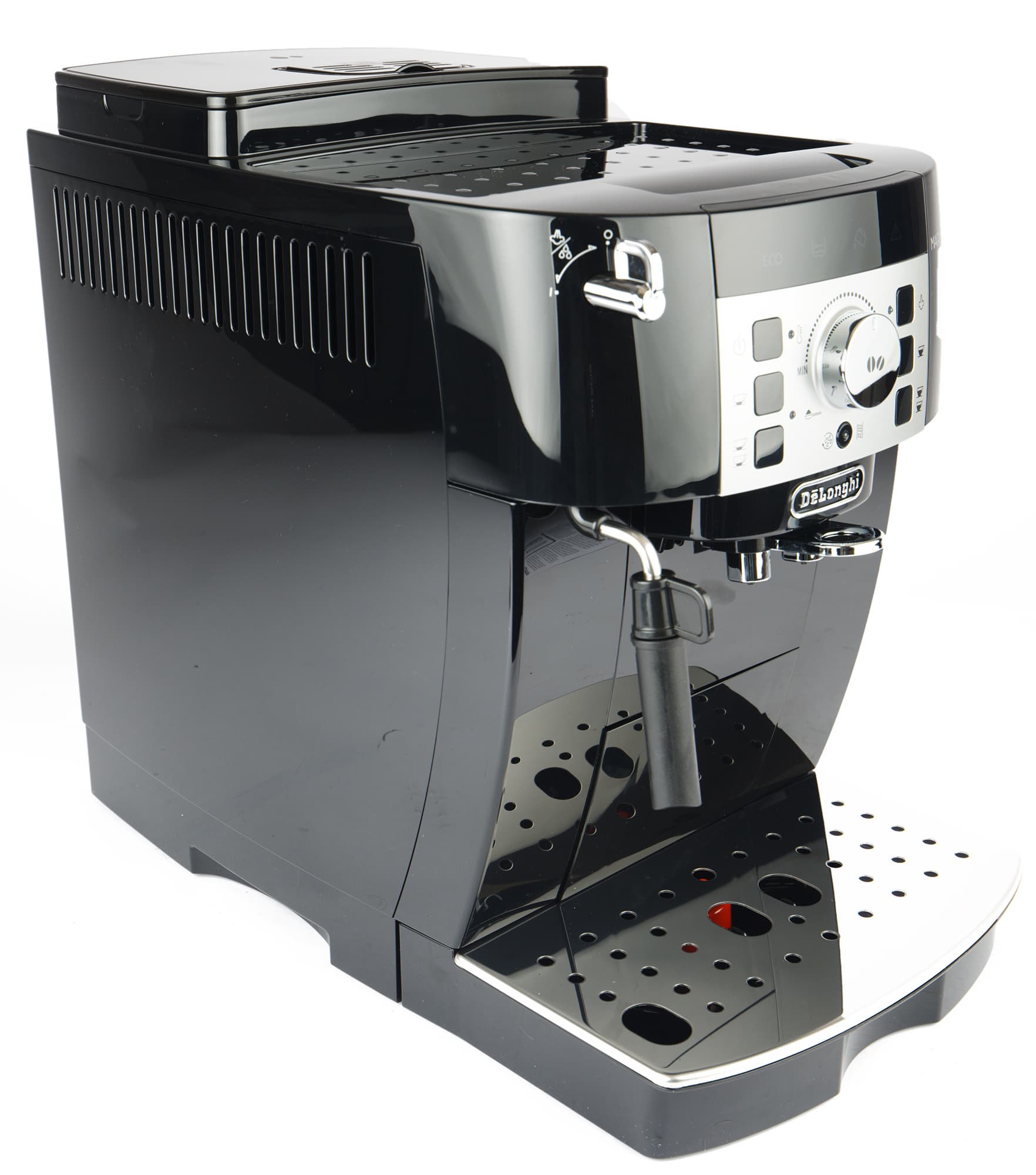 Герой нашего сегодняшнего обзора — еще одна далеко не новая, но по сей день пользующаяся спросом модель De’Longhi, Magnifica S (ECAM 22.110.B). Более того: на сегодняшний день это самая дешевая модель, представленная на официальном сайте. Давайте разберемся, что же умеет самый бюджетный автомат De’Longhi и каковы его возможности. Мы постараемся относиться к прибору не слишком строго: все-таки возраст у аппарата уже солидный, да и статус младшей на сегодняшний день модели недвусмысленно намекает, что чудес тут ждать не стоит.