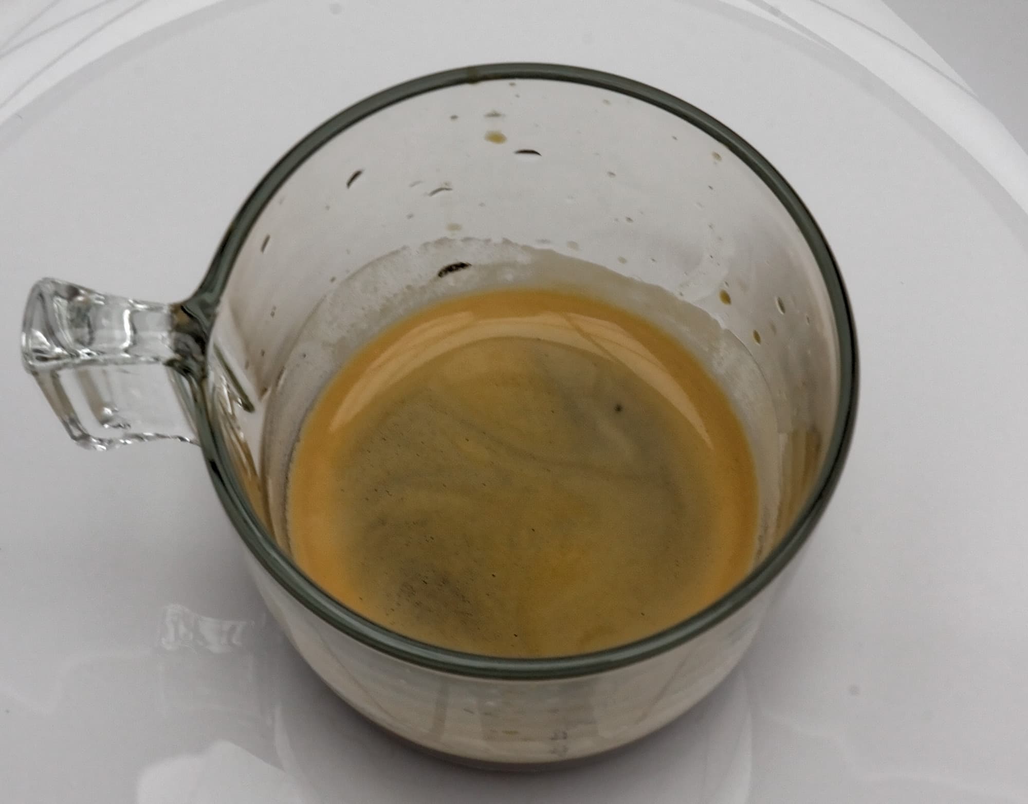 Наконец, взглянем на режим «большой чашки». Сколько кофе приготовит наша машинка за один раз? На фото ниже — стандартная чашка из Икеи емкостью 230 мл. Как мы видим, режим «двойной большой чашки» наполнил ее до краев.