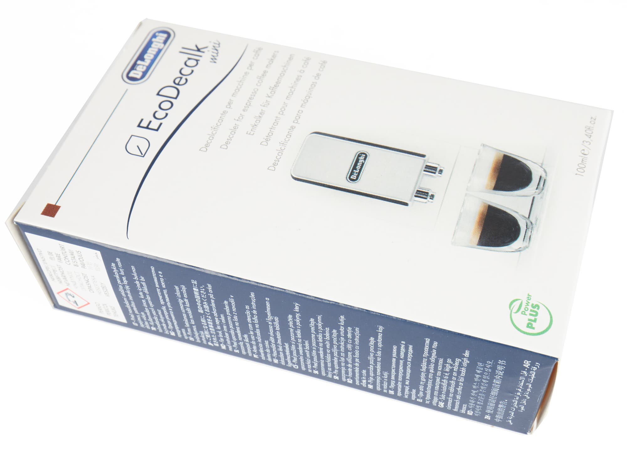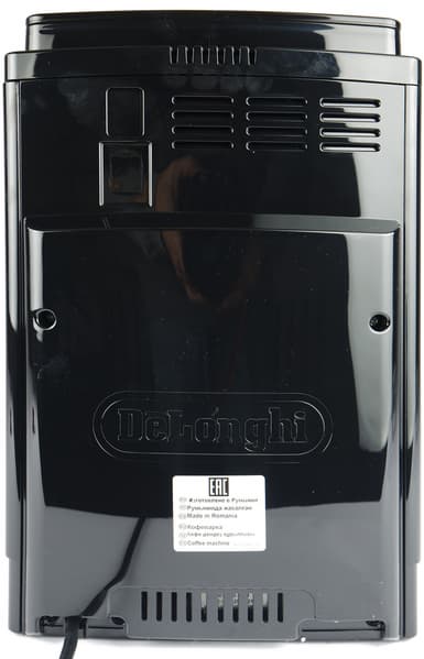 Кофемашина поставляется в объемной картонной коробке, оформленной в фирменном стиле De’Longhi: основной цвет — черный, дополнительный — темно-синий, печать полноцветная, фотографии высокого качества.