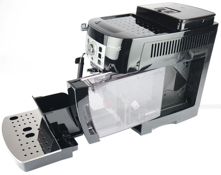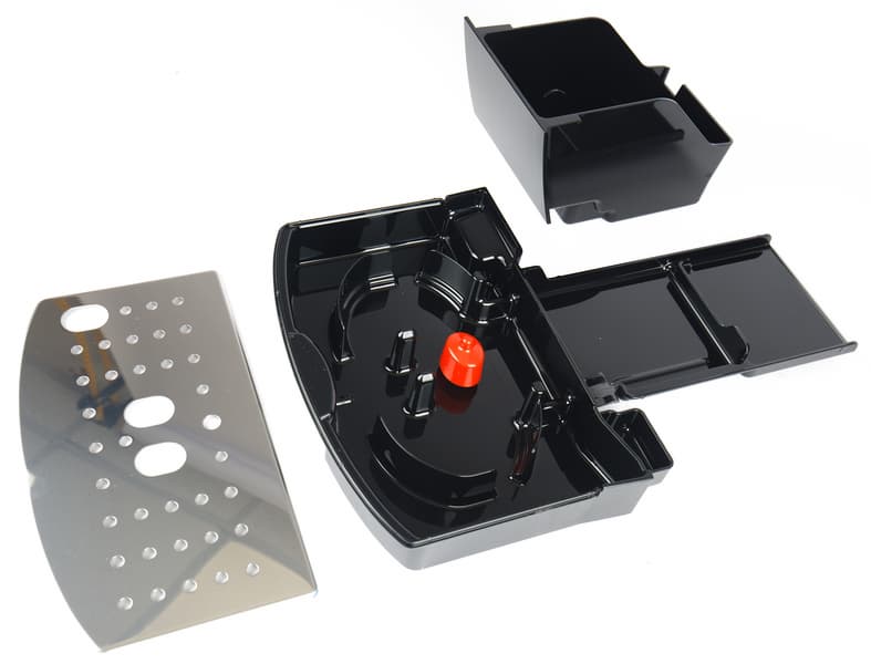 Спереди в нижней части устанавливается конструкция для сбора капель, лишней влаги и отработанных кофейных таблеток.